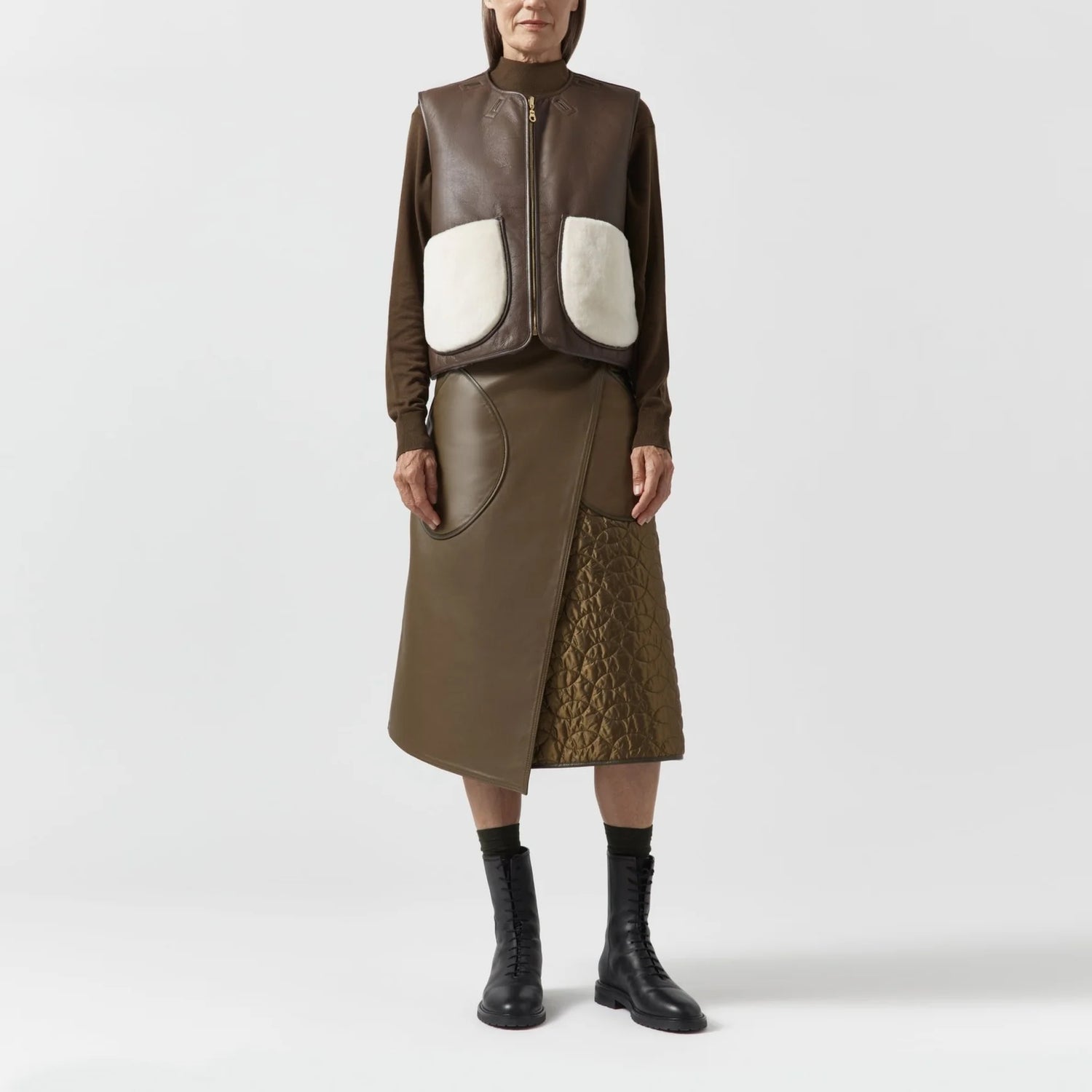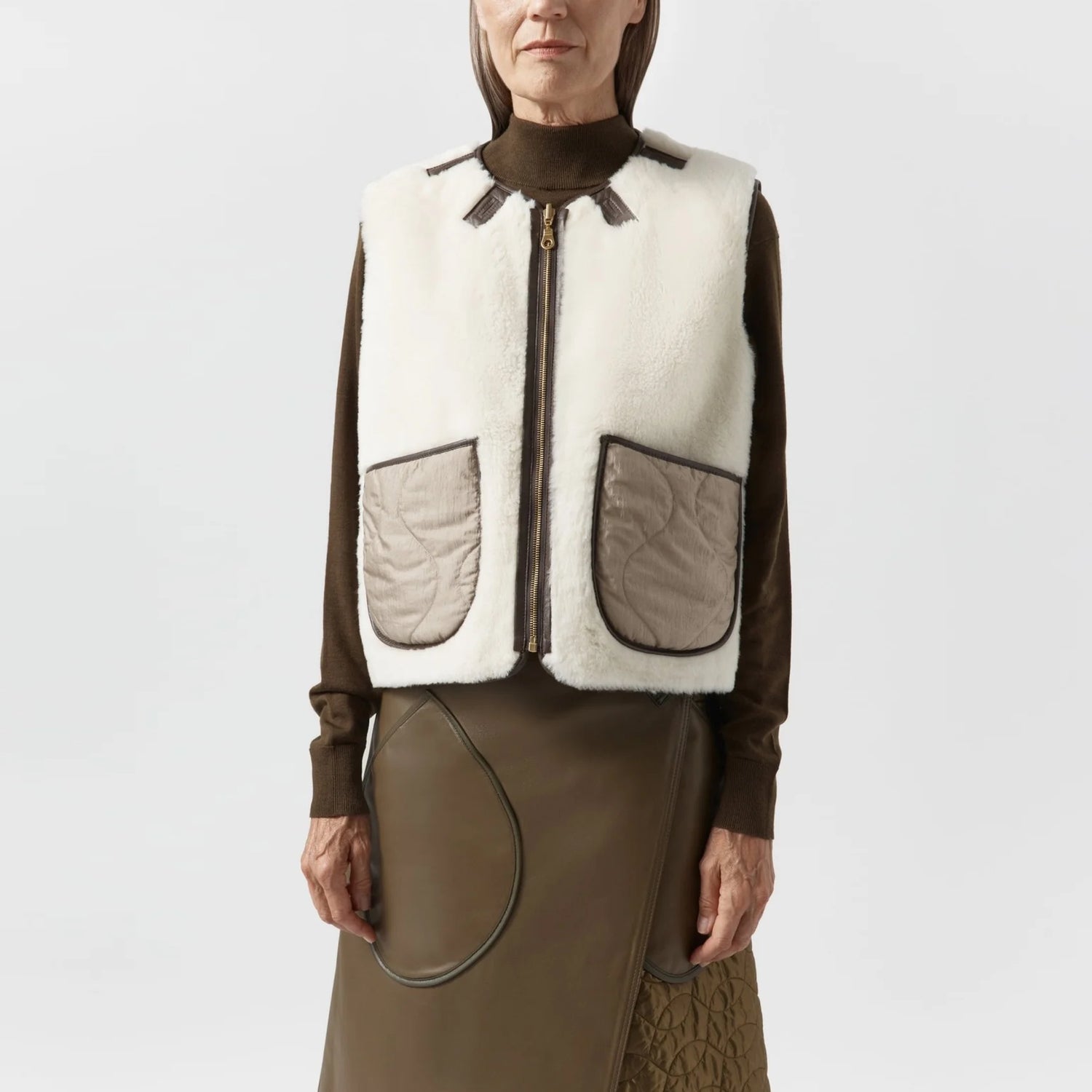 A cosy cold-weather essential. This structured vest is made from ultra-soft Italian Nappa shearling and features our signature quilted nylon back. It has a slim, layer-friendly silhouette with bound leather seams and a fully reversible design. The ultimate cool-girl piece and a favourite here at Collen and Clare