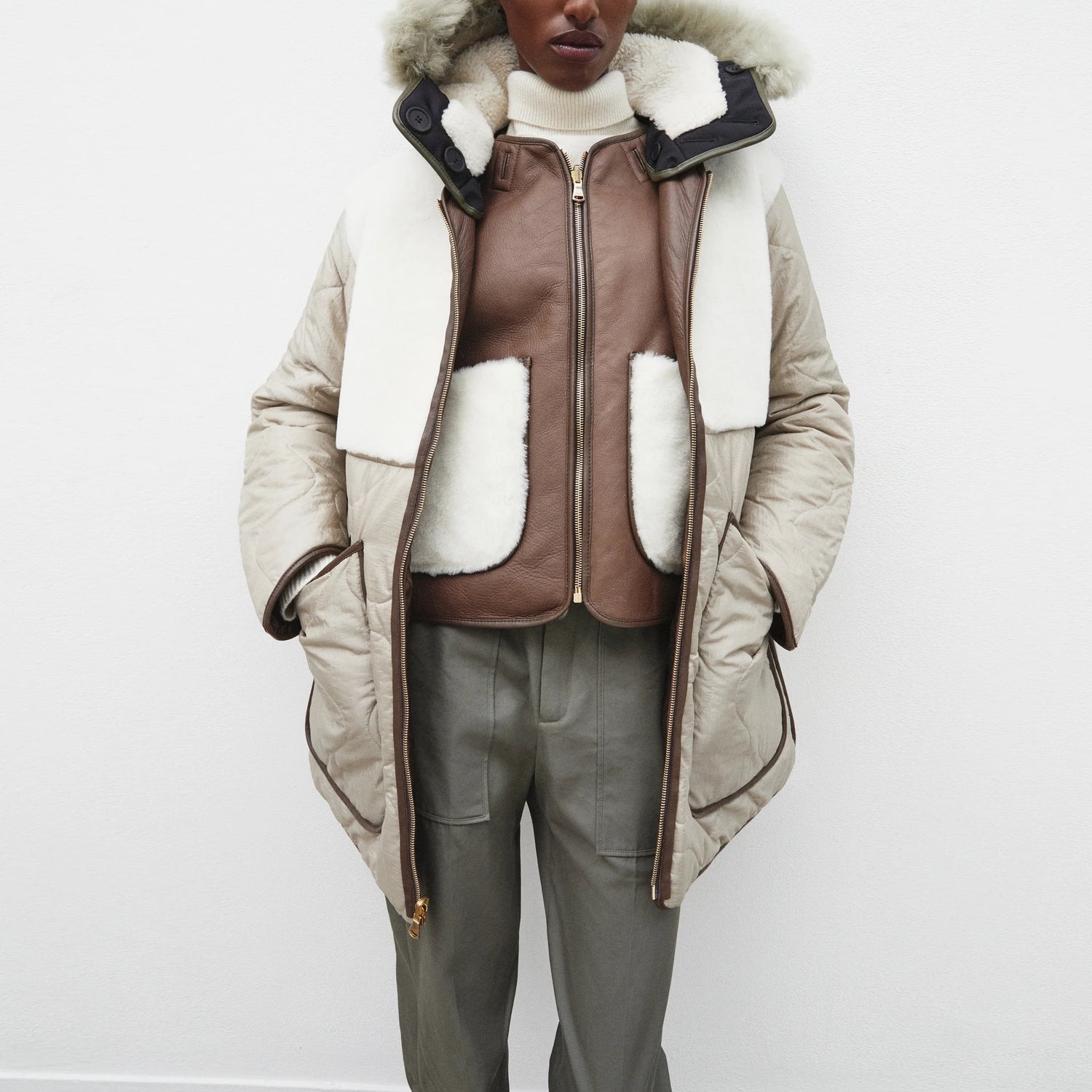 • ShellItalian By-Product Shearling (By-Product; Gold & Silver Standard) and Italian Nappa Leather (By-Product) with Japanese and Italian Nylon (PFC-Free)
