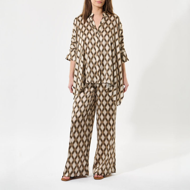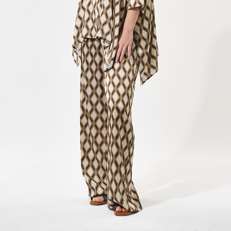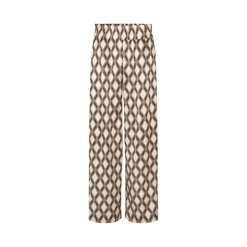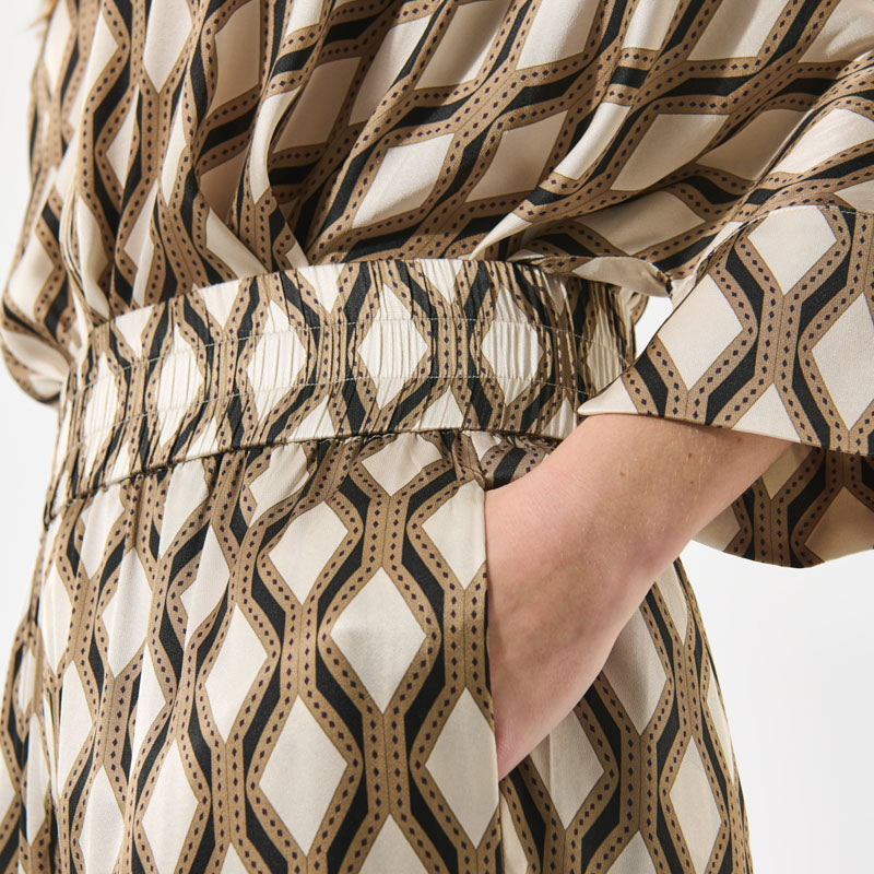 Elevate your wardrobe with the Dea Kudibal Margodea Trousers in the sophisticated 'Brilliante' print—a subtle geometric diamond design in soft, neutral brown tones. Crafted from the brand’s signature stretch silk twill, these relaxed pull-on trousers offer a perfect balance of style and comfort.