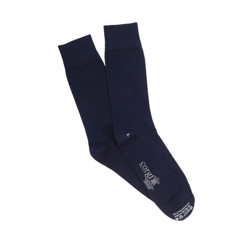 CORGI Mens Brecon Ribbed Cotton Socks in Navy