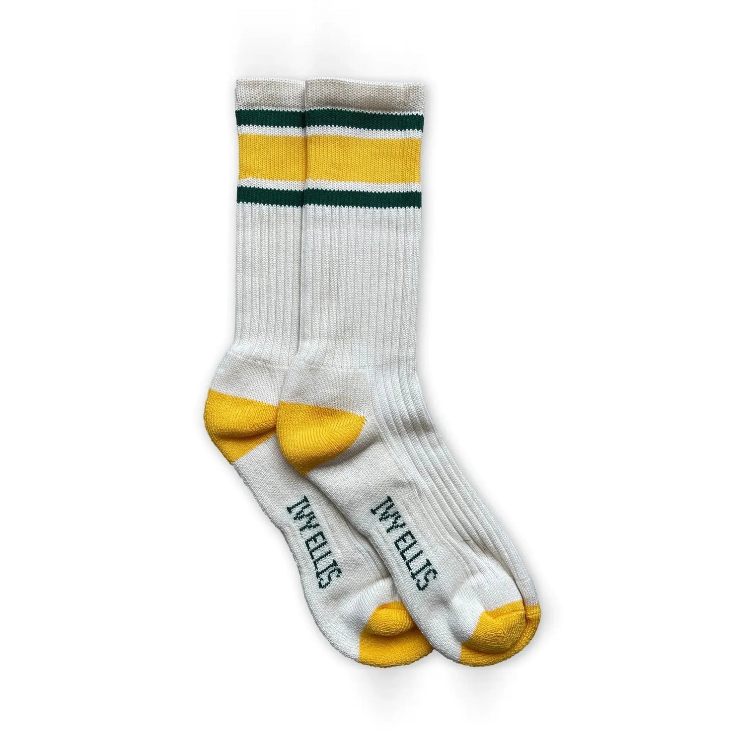 IVY ELLIS Mens Starr Vintage Cotton Sport Socks in Ecru/Yellow/Green
