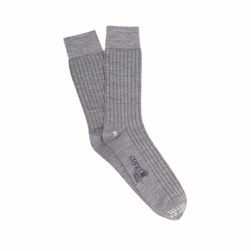 CORGI Mens Tenby Ribbed Merino Wool Socks in Grey