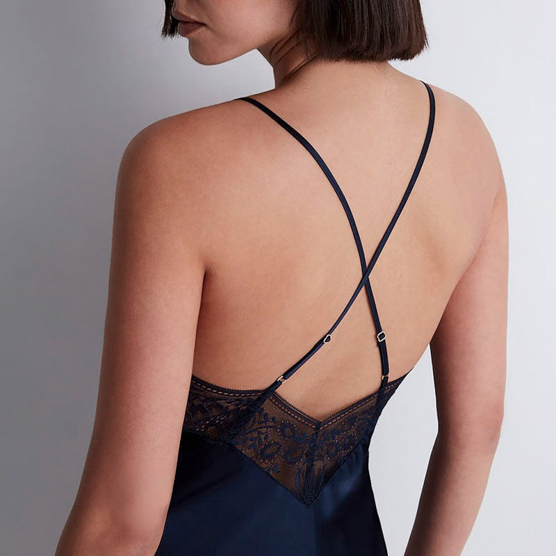 This baby doll nightie from Aubade Paris is crafted from soft stretch silk to move gracefully with the body. Featuring a low neckline with intricate openwork lace, it is elegantly open at the back.
