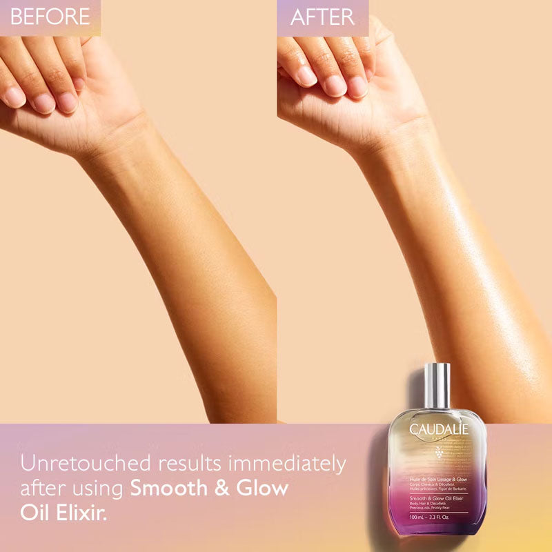 Spray a few drops of Smooth & Glow Oil Elixir in the palm of your hand and gently massage onto body, hair and décolleté.