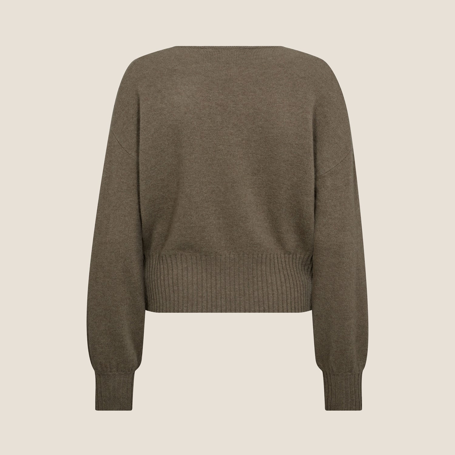 Effortlessly elegant knitwear by Mos Mosh. This beautifully crafted piece features long, subtly puffed sleeves, a flattering V-neckline, and a wide ribbed hem for a sophisticated finish. Simple, timeless, and undeniably beautiful.