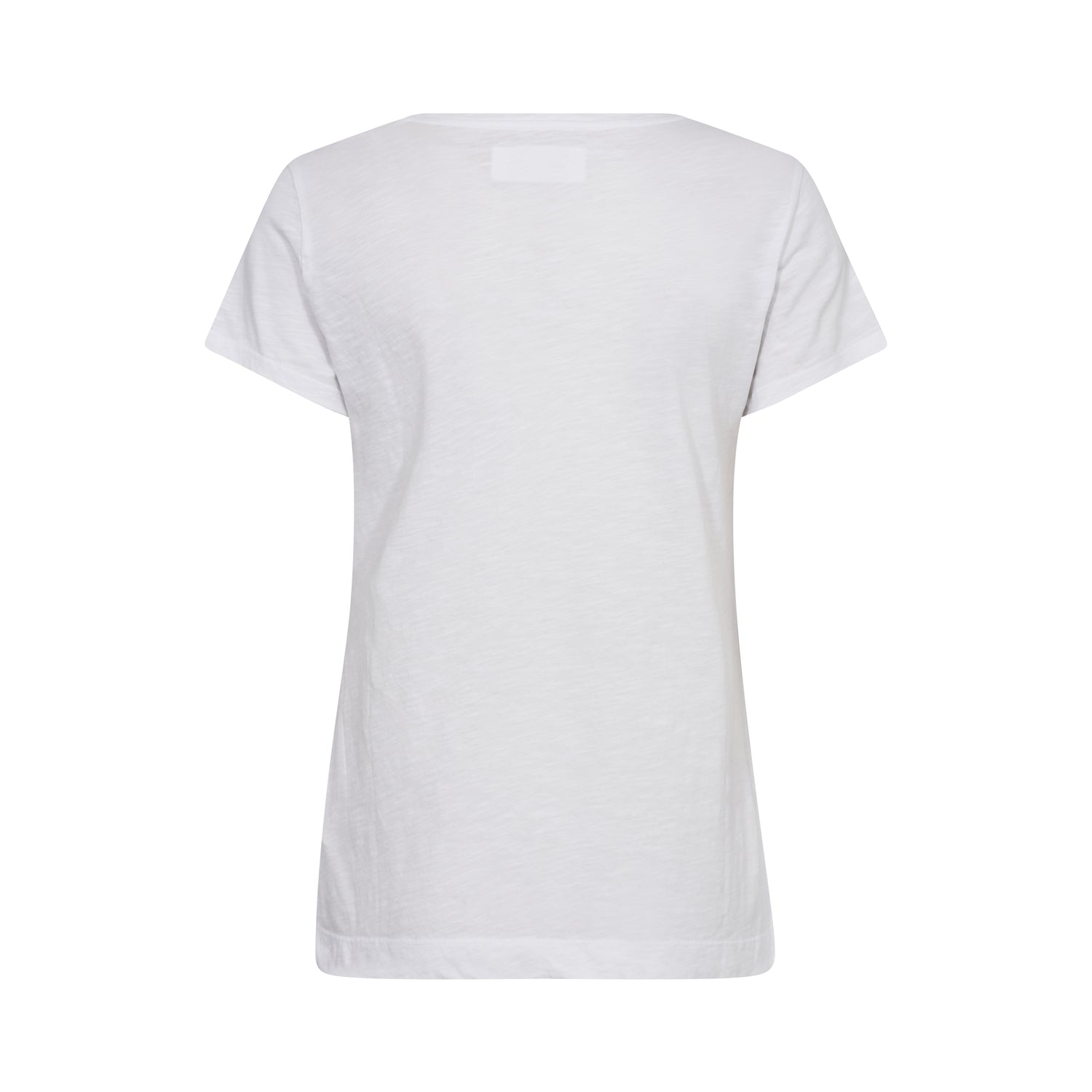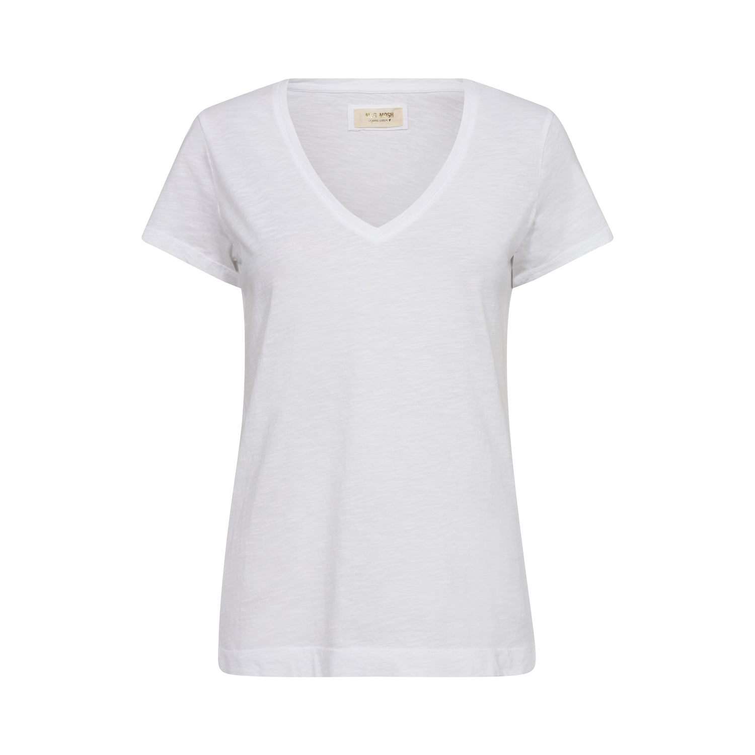 Crafted from soft organic cotton, this timeless tee features a flattering V-neckline and a slim yet comfortable fit. The lightweight fabric feels smooth against the skin, making it ideal for effortless layering. Style it with jeans for a casual everyday look or pair with tailoring for an elegant contrast.