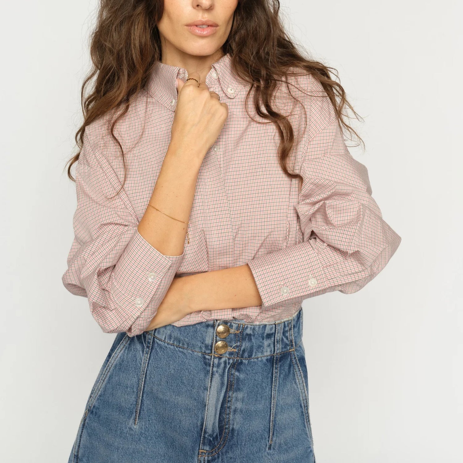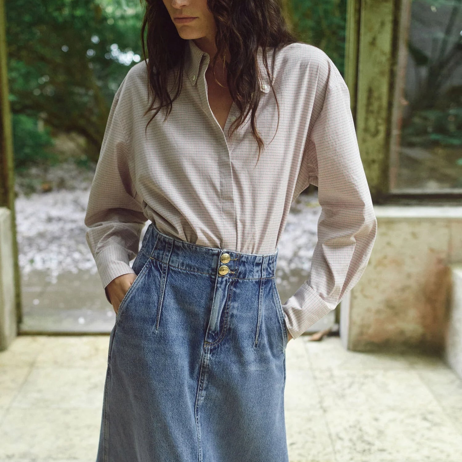 A modern update on the classic check shirt, designed in an oversized fit for a relaxed silhouette. It features a pointed collar and concealed button fastening for a sleek finish. Crafted from soft cotton, it’s ideal for layering. Wear it tucked into denim or open over a tank for effortless everyday style.