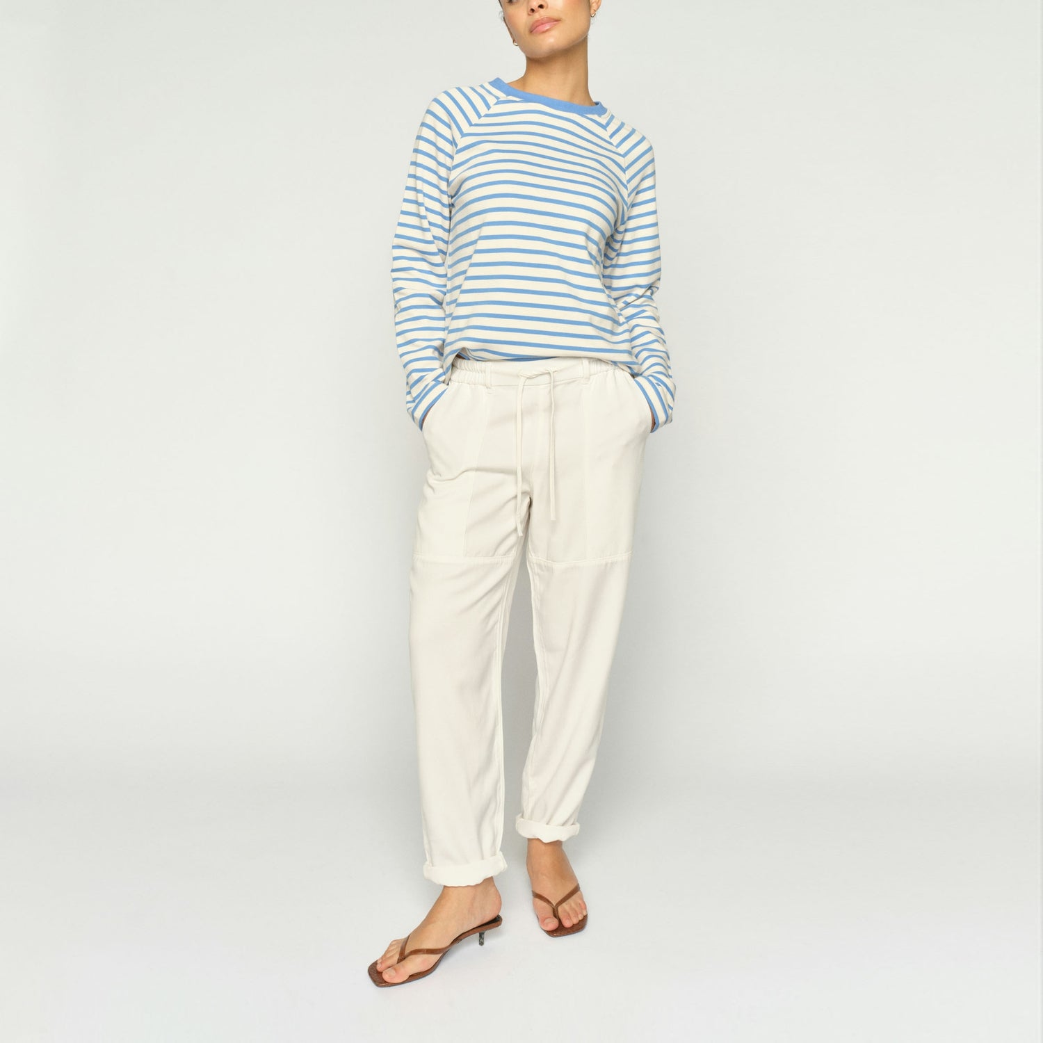 Relaxed trousers crafted from soft, lightweight fabric for an easy, laid-back feel. Designed with an elasticated waist, tie belt and subtle seam detailing, they offer a modern utility-inspired look. Style them with a tucked-in blouse or a simple T-shirt for effortless everyday wear.