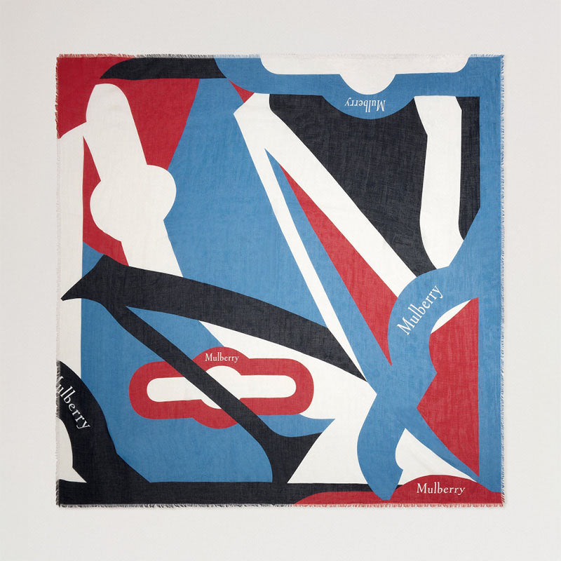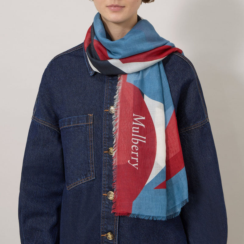 MULBERRY Colour Block Branded Lightweight Scarf in Brighton-Night Sky
