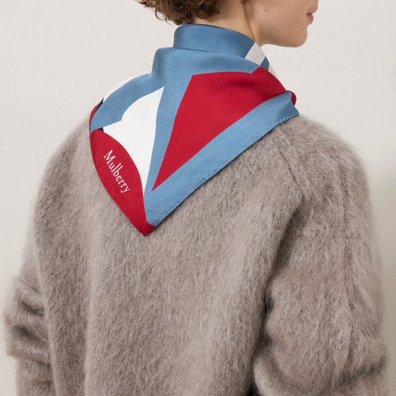 This printed scarf is made from 100% silk twill, and can be worn either around the neck, or attached to your favourite Mulberry bag.