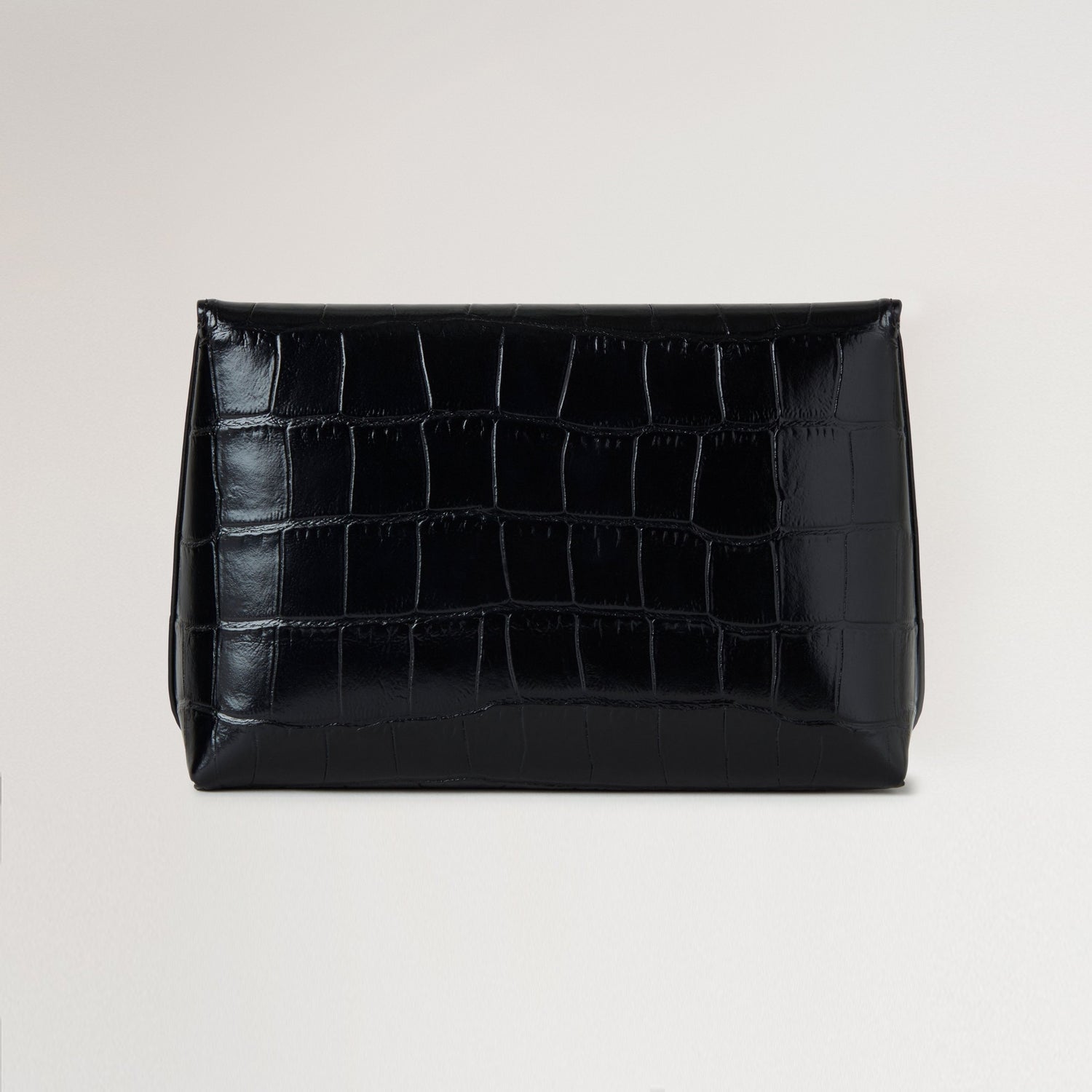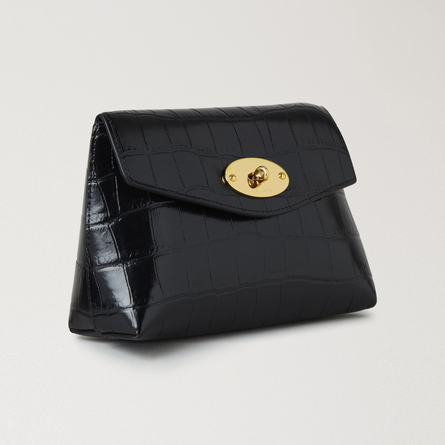MULBERRY Darley Cosmetic Pouch Shiny Small Croc in Black