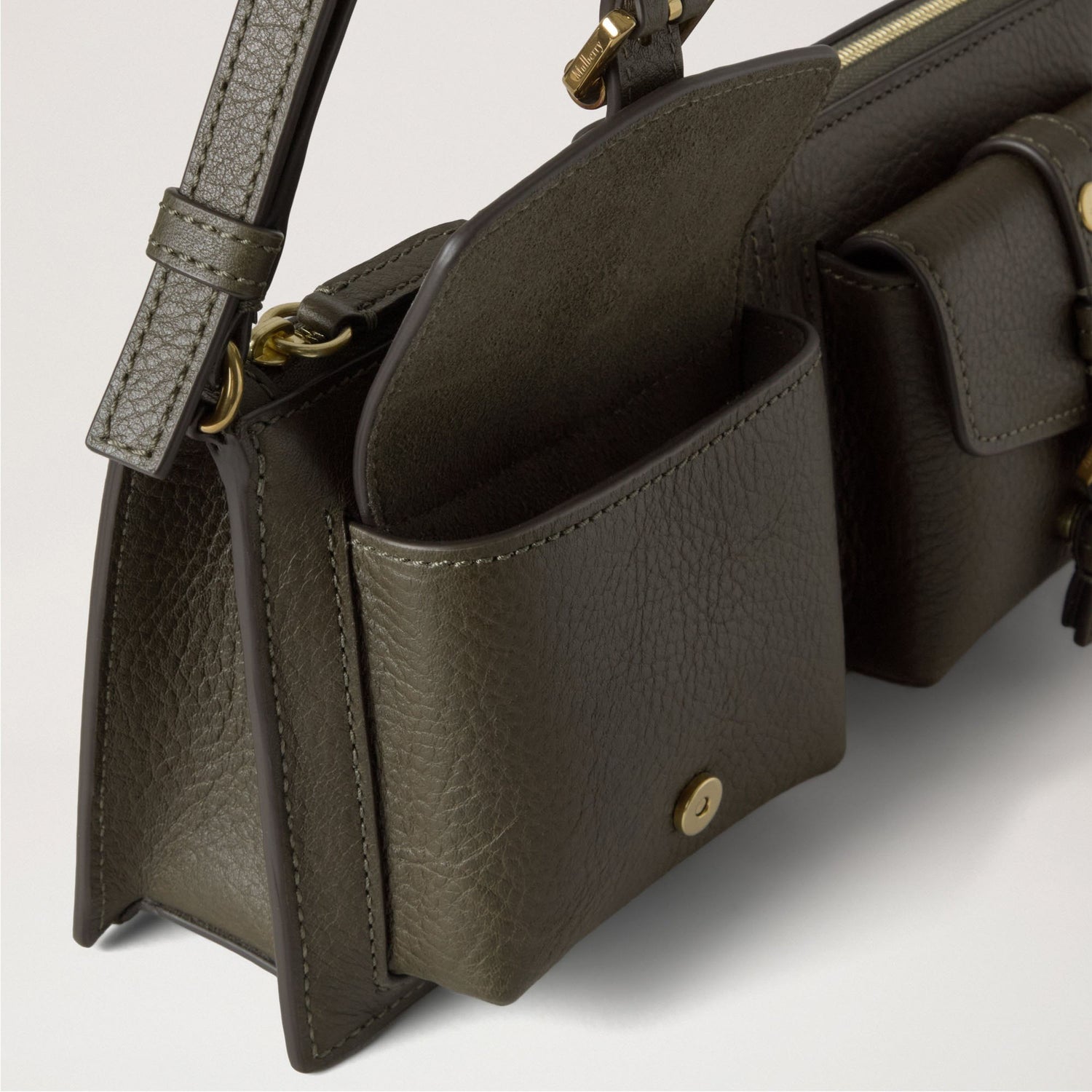 Another style of the beloved Roxanne, this versatile version reimagines Mulberry’s 2004 icon for today. The Mini Roxanne Shoulder Bag retains key details from the original, now updated with a modern silhouette and functional Mulberry brass buckles on the front pockets, finished with signature Mulberry tree rivets.