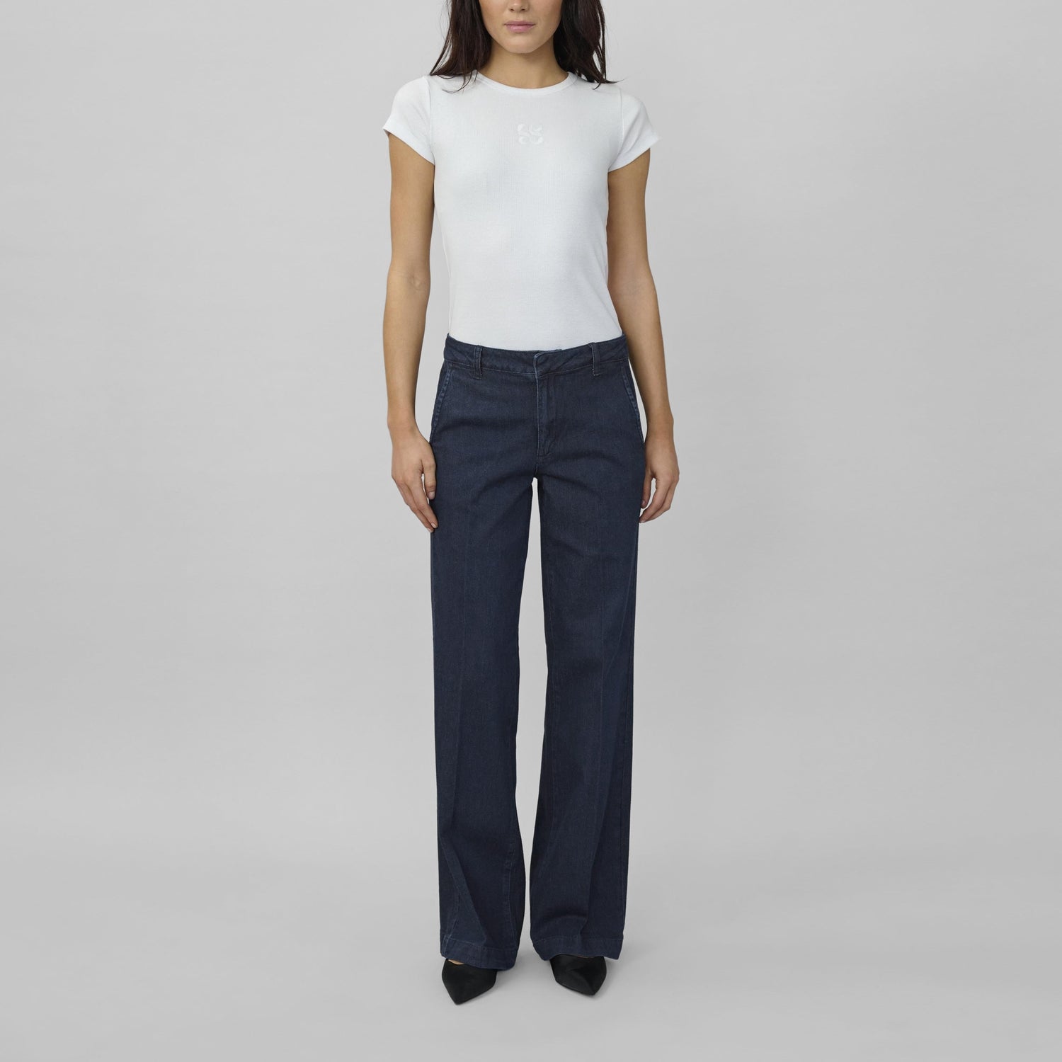 Wide-leg jeans for women with a classic straight fit and zip fly. Designed with a mid-rise waist, full-length cut, and practical belt loops, they offer everyday comfort and effortless versatility... easy to dress up or down for any occasion.