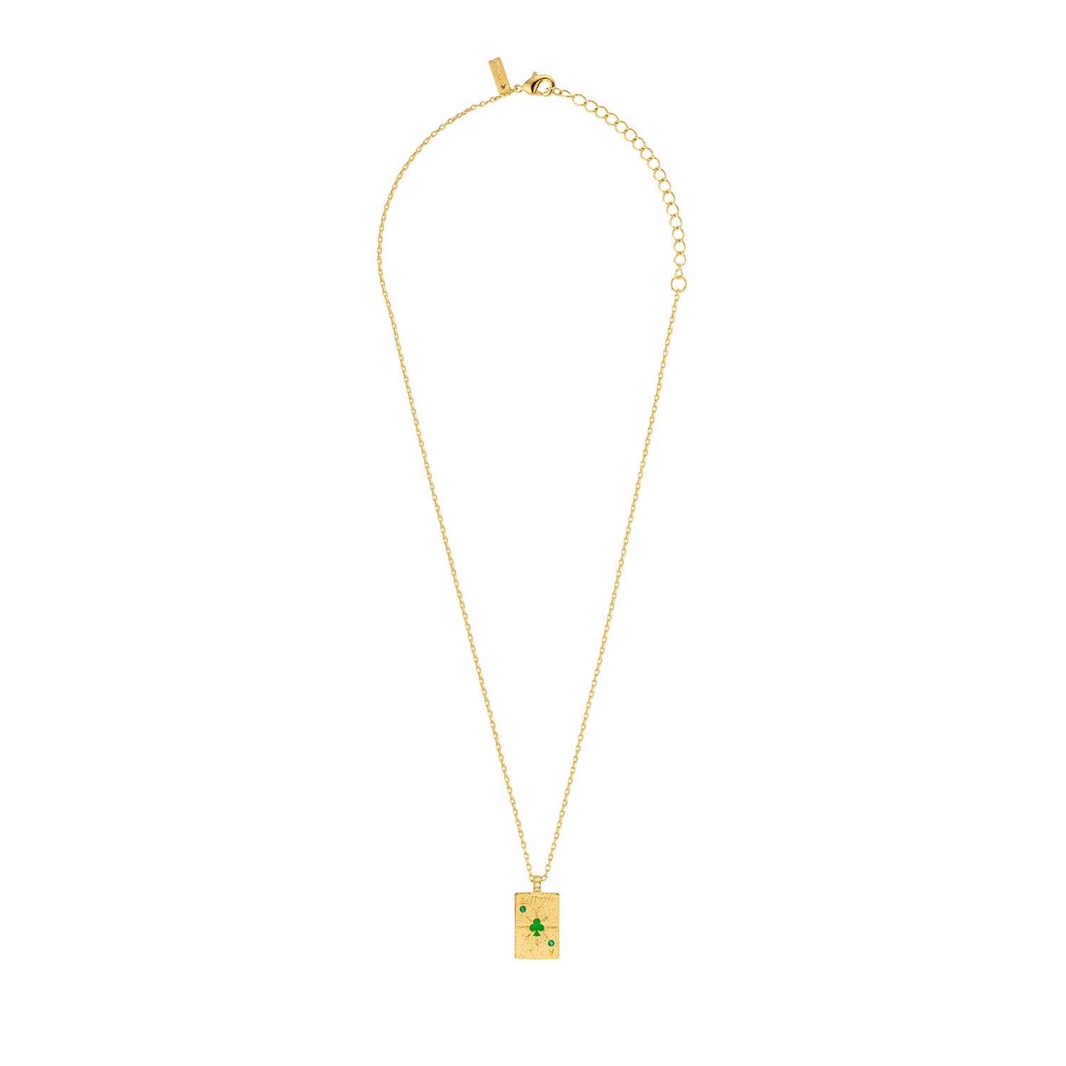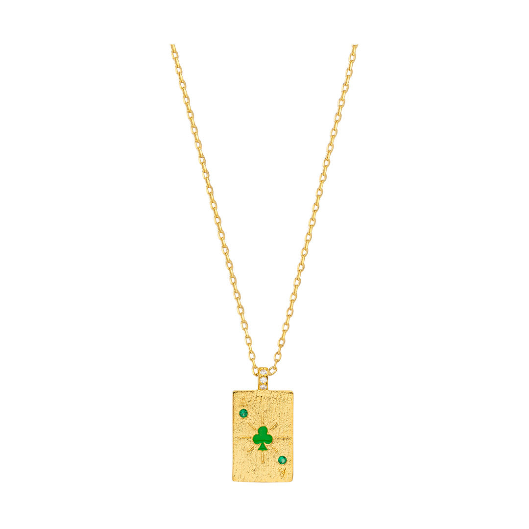 The Ace of Clubs necklace by MYA BAY, plated in 24-carat recycled gold, takes its cue from the Club suit,  a symbol of freedom and quiet rebellion.