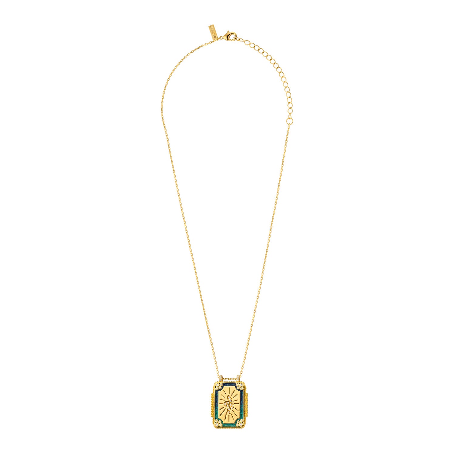 The Mystic Blue Twice Boheme necklace by MYA BAY, gilded with 24-carat recycled fine gold, offers two sides of striking style in one elegant piece.