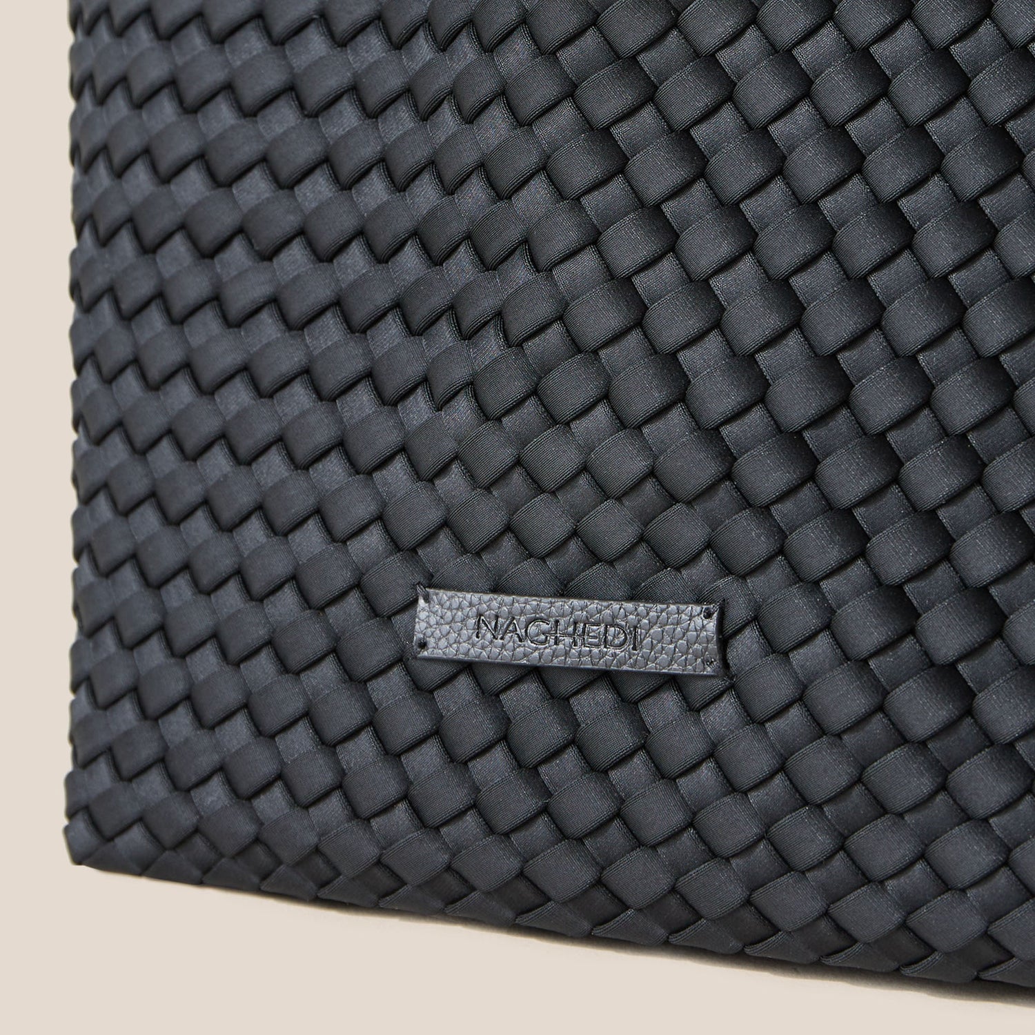 Handwoven neoprene in true black—sleek, timeless, and endlessly versatile.