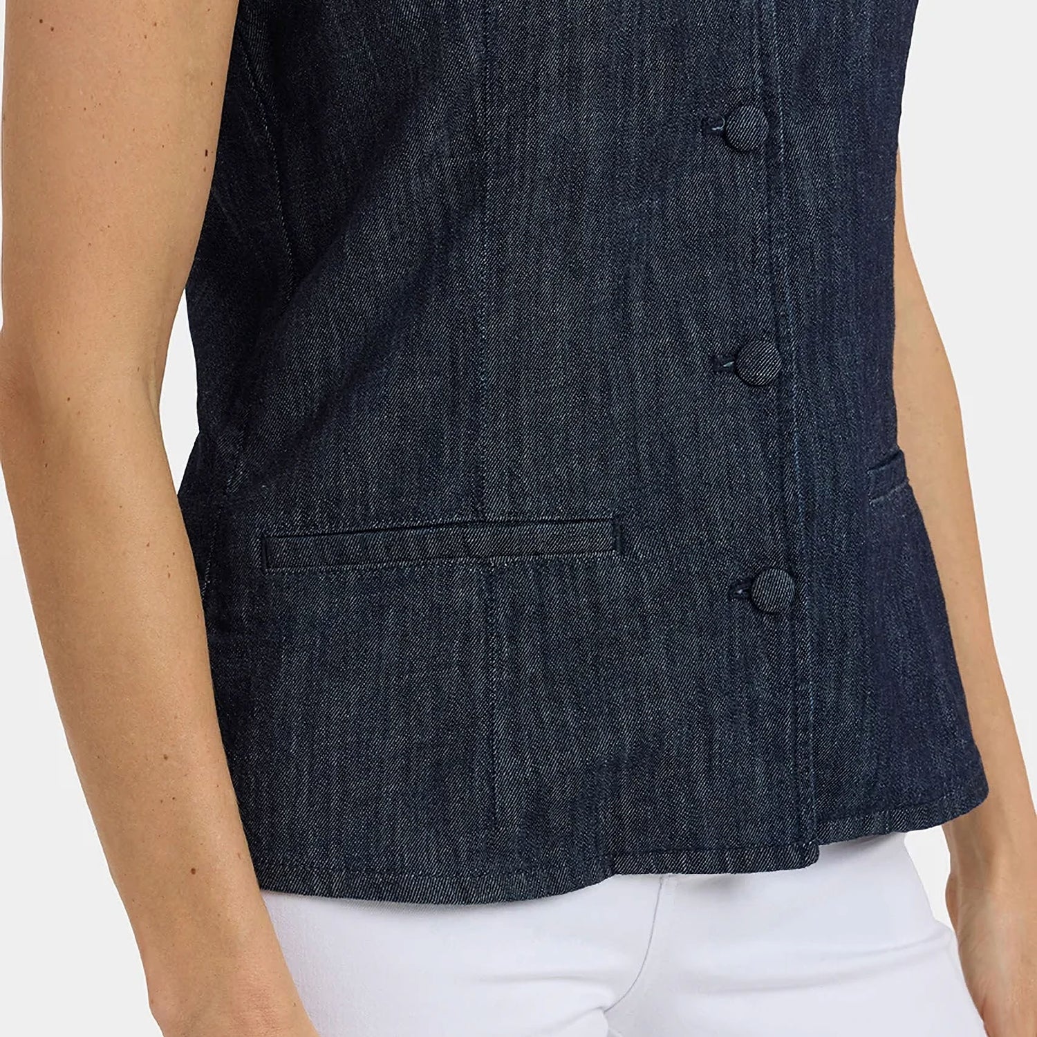 NYDJ's Denim Vest is made from lightweight 100% cotton denim to keep you cool and comfortable. Wear it as a top with shorts or trousers, layer it over a tee, or pair it with a skirt.