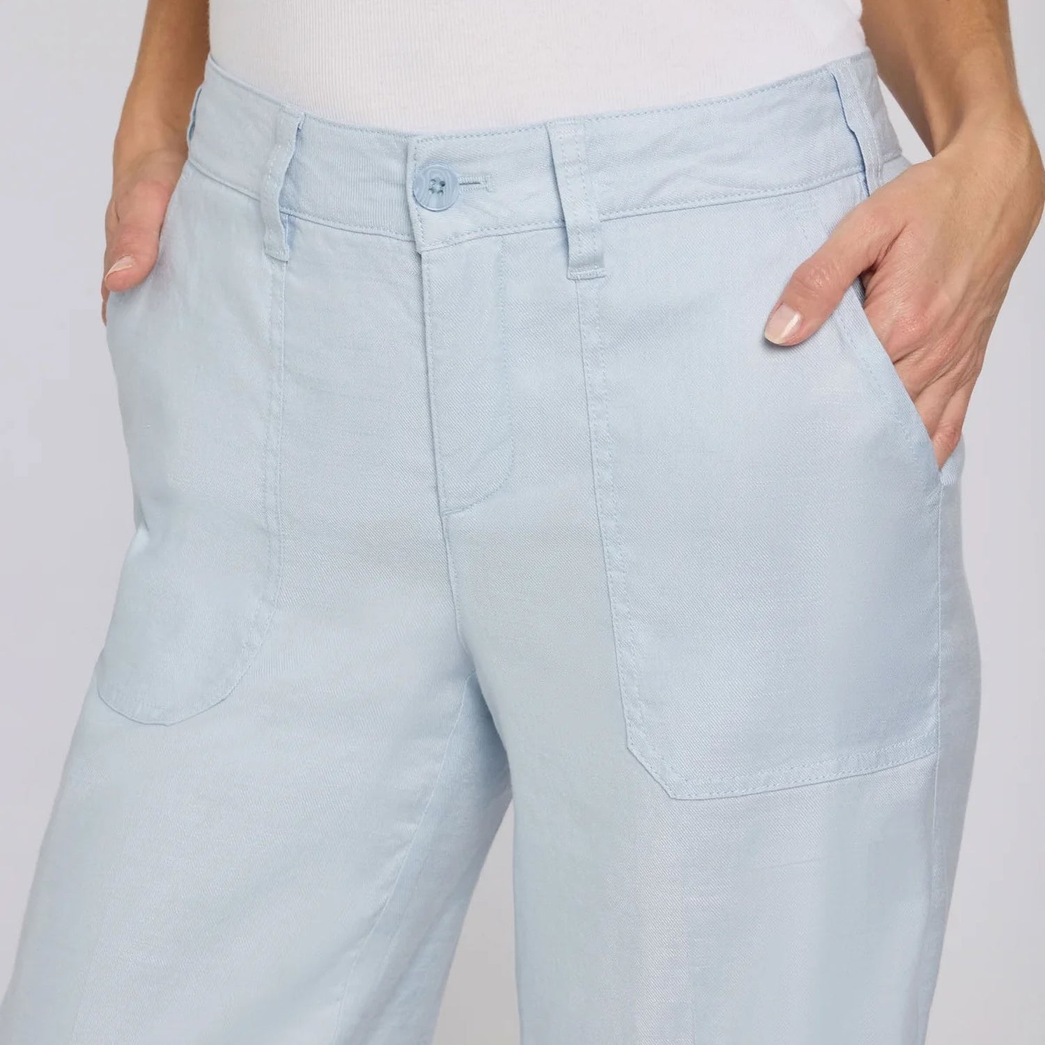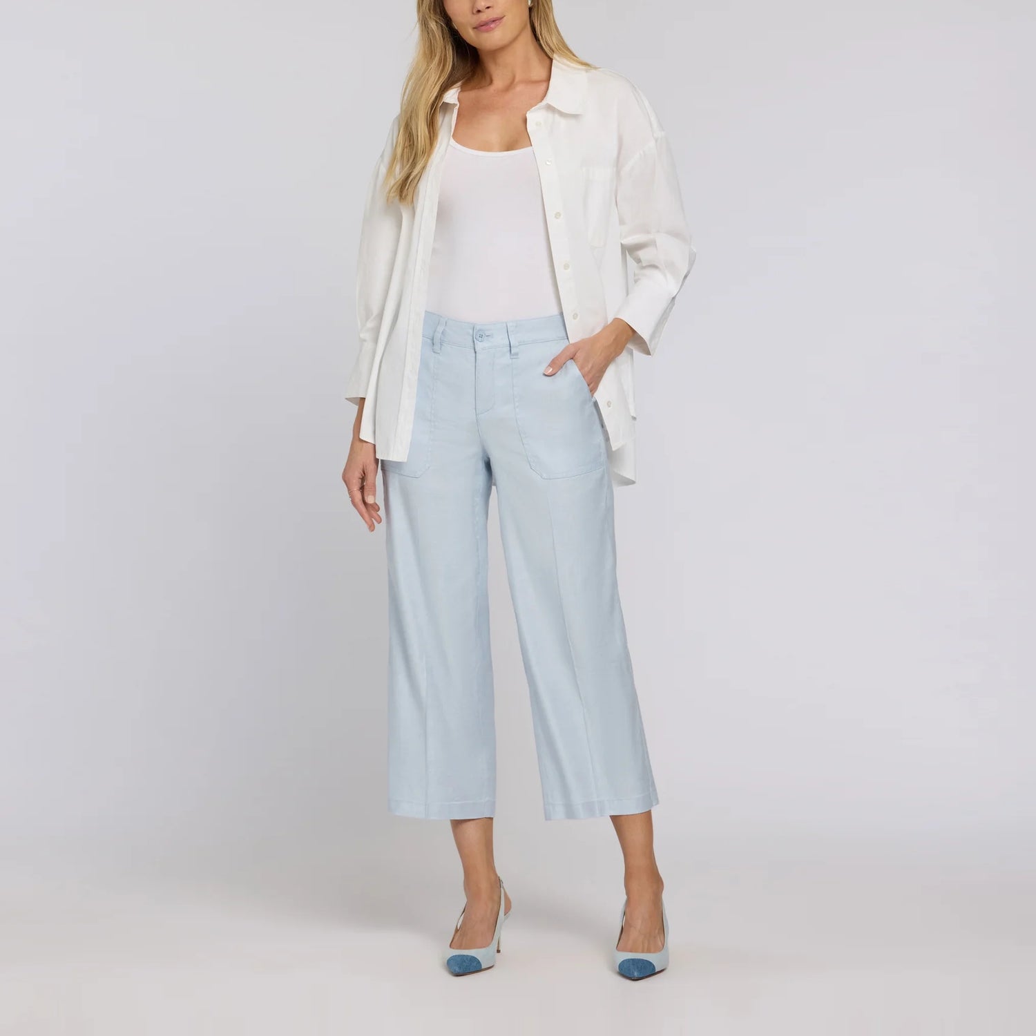 Effortless style meets comfort with the Wide Leg Cargo Capri Pants in Stretch Linen by NYDJ. Designed with a fashion-forward wide leg and cropped silhouette, these pants are perfect for warm-weather wear.