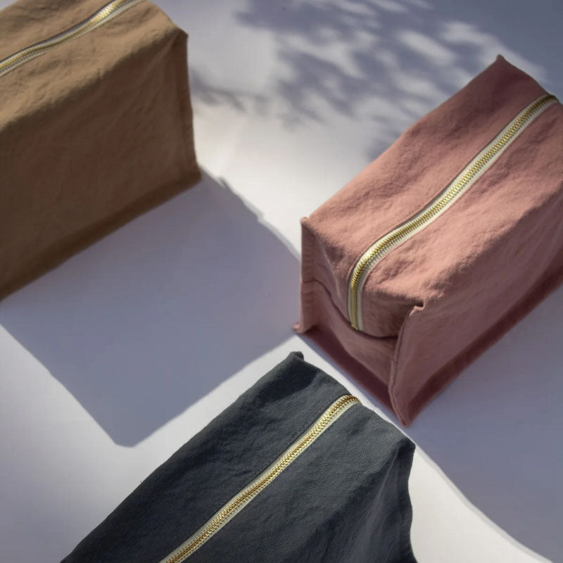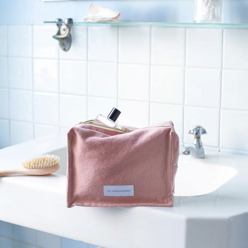 LES PENSIONNAIRES Organic Cotton Cube Toiletry Bag in Rosewood