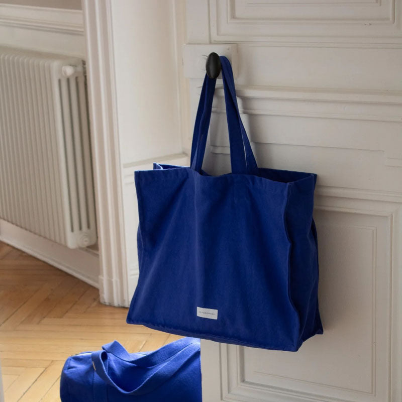 We’re absolutely in love with this thick navy organic cotton canvas large bag! With its generous dimensions, it’s the perfect everyday companion.