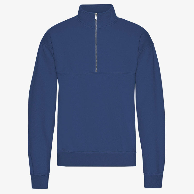 COLORFUL STANDARD Organic Quarter Zip Jumper in Marine Blue