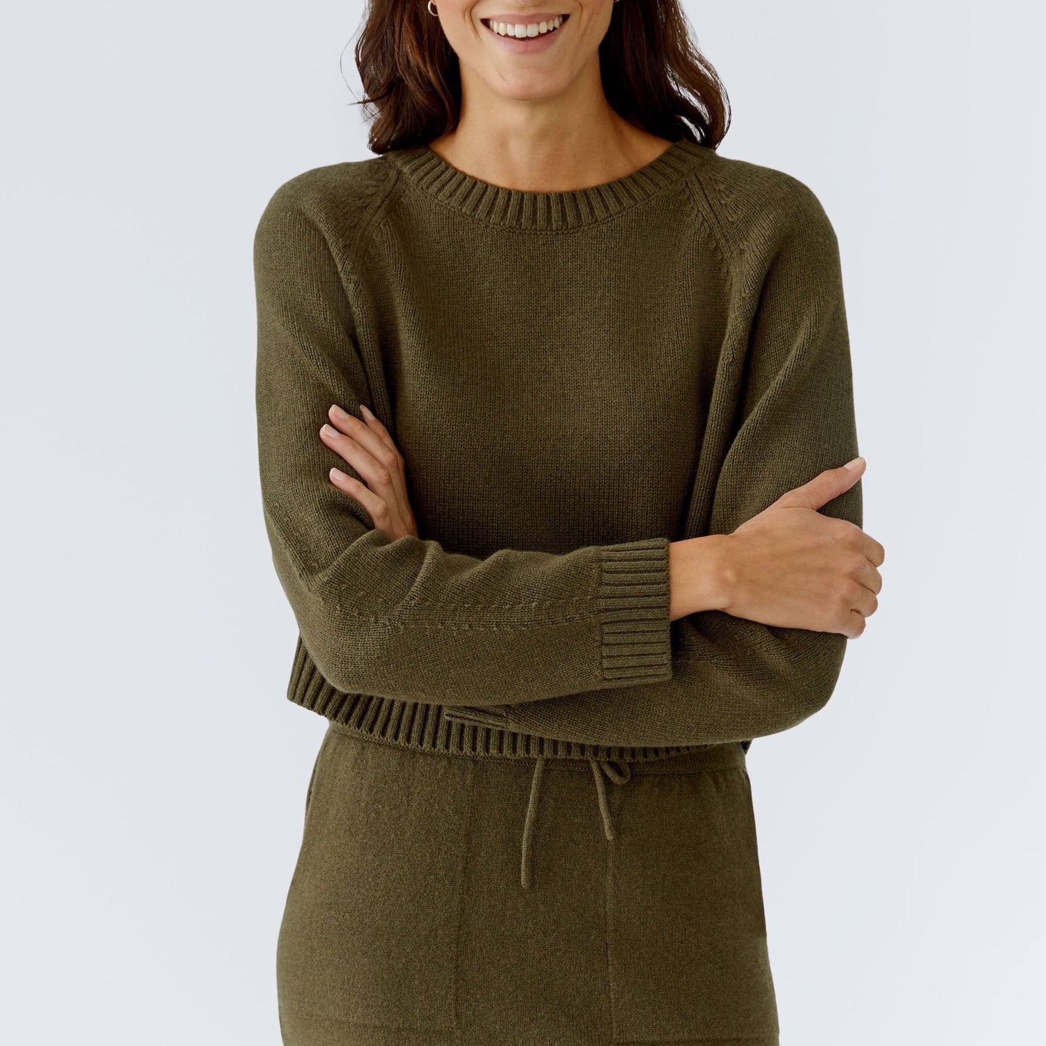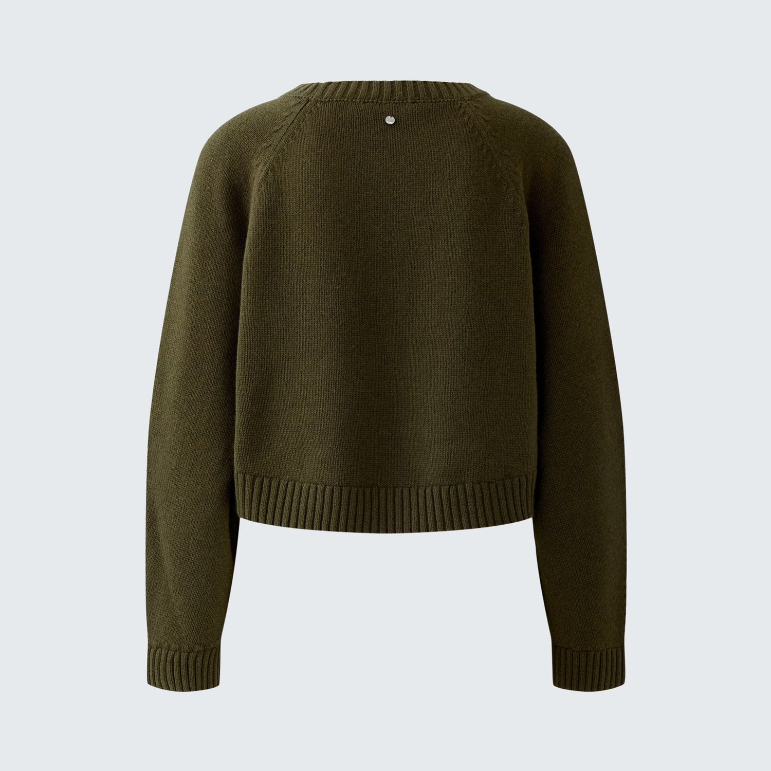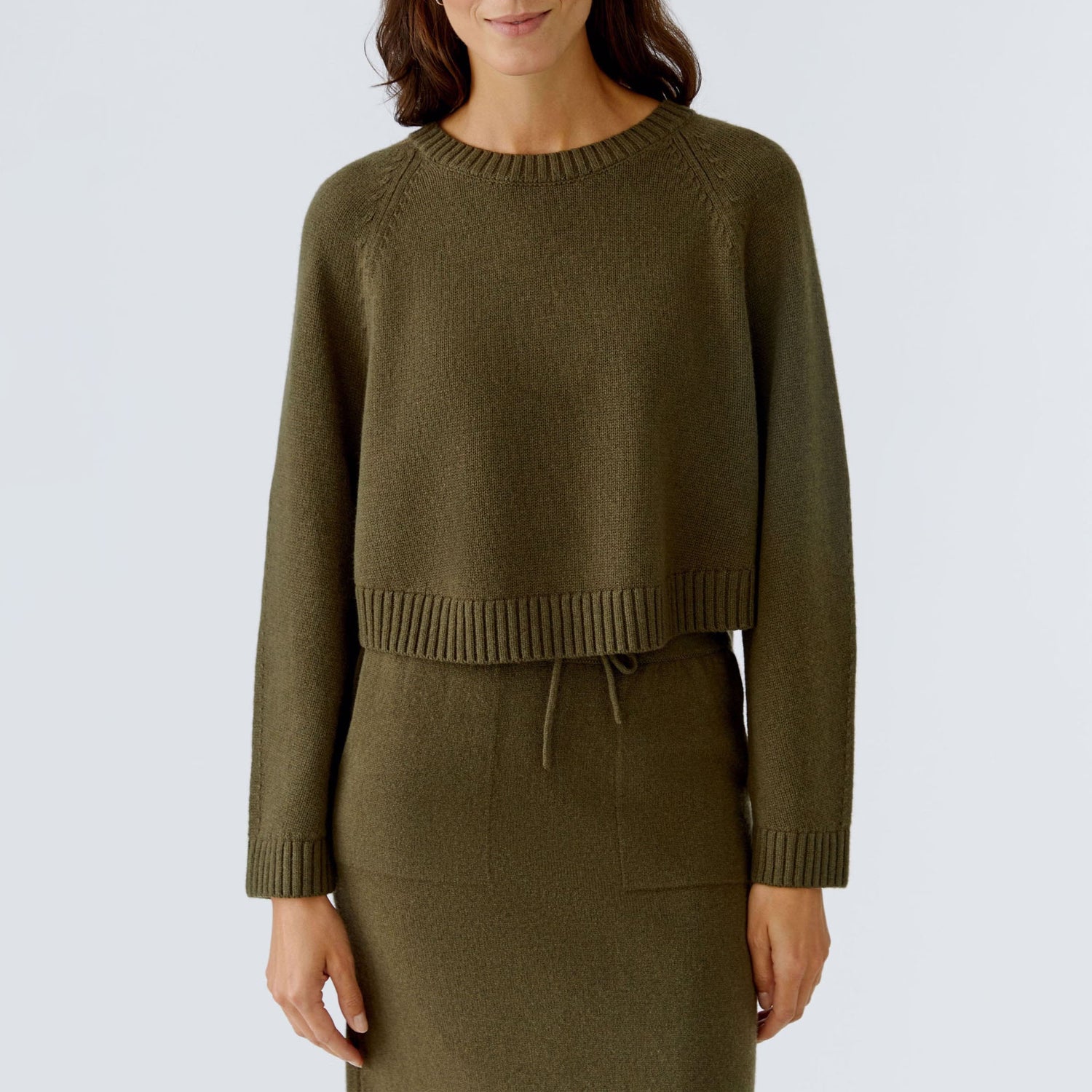 OUI Boxy Short Wool Mix Jumper in Khaki