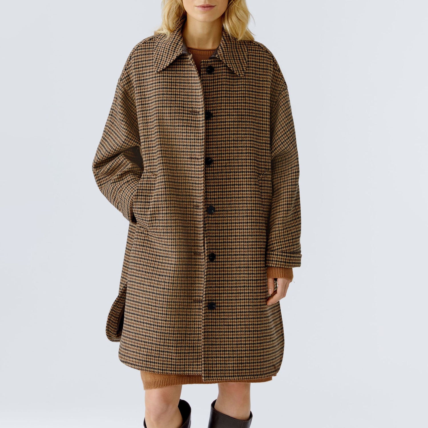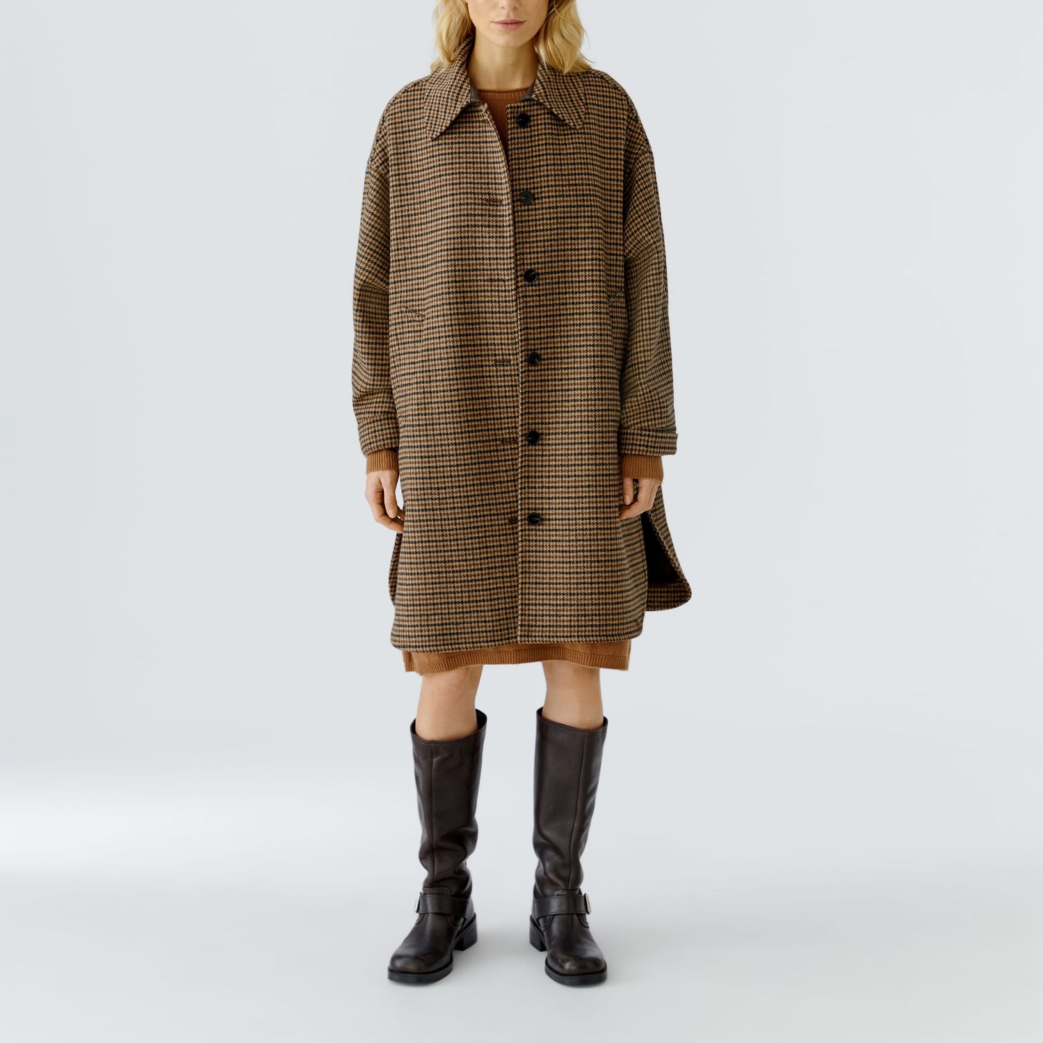 This oversized coat offers a relaxed, casual take on classic Brit Chic style. It’s crafted from a soft woven blend with wool content and features an all-over check pattern for a timeless look. Cut in a laid-back silhouette with a regular length, it includes a Kent collar with a leather-look tab and a full button placket finished with high-quality horn-look buttons.