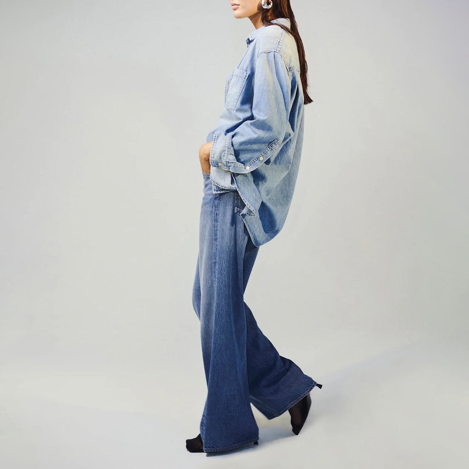 Referencing baggy legged silhouettes from the early 2000’s, the Paloma sits at the waist with vintage detailing and an easy flowing leg. Style yours with anything from a breezy blouse to a simple slim tank.