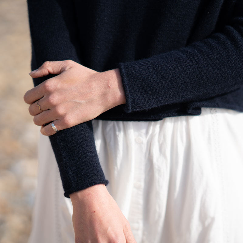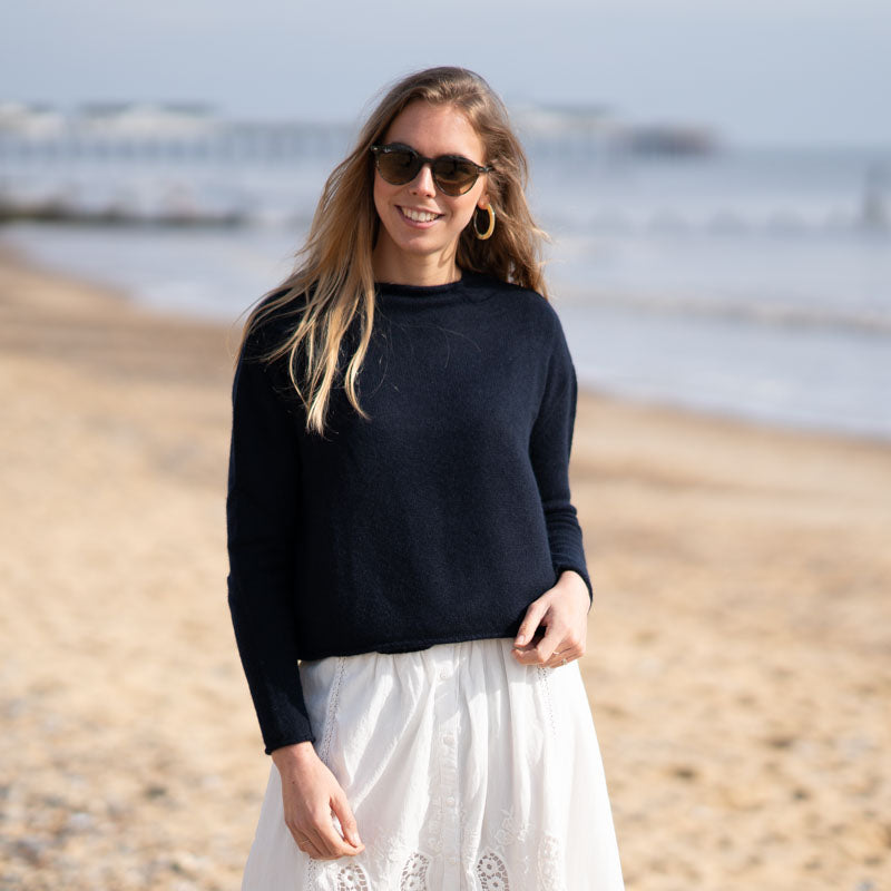 COLLEN & CLARE Pea Cashmere Crop Knit in Dark Navy