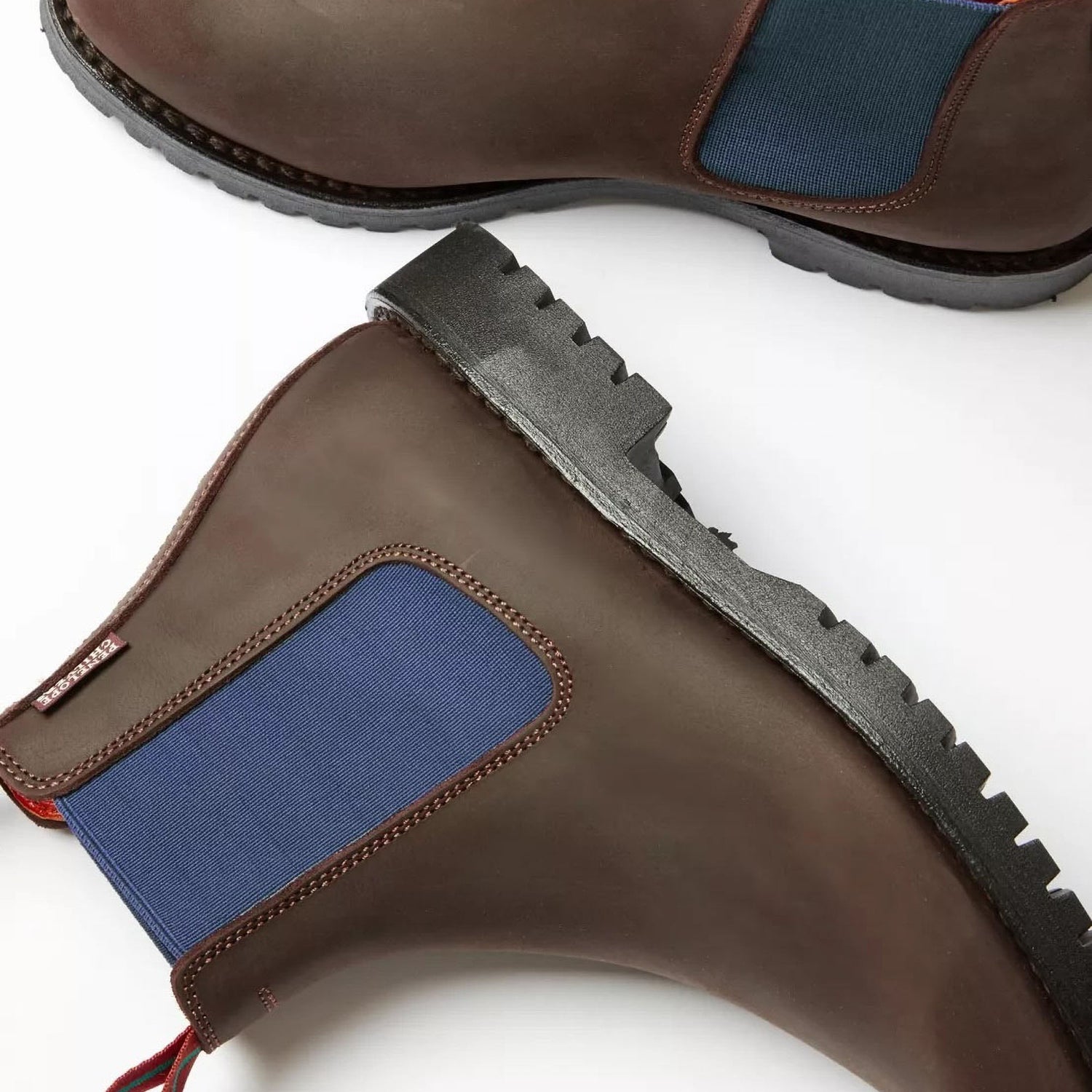 The rubber-soled Men's Nelson boot is a masterclass in effortless, understated style. This practical ankle boot is handmade from rugged leather, featuring a coloured contrast elastic and a durable Goodyear welt sole. A classic design, reimagined with a modern twist.