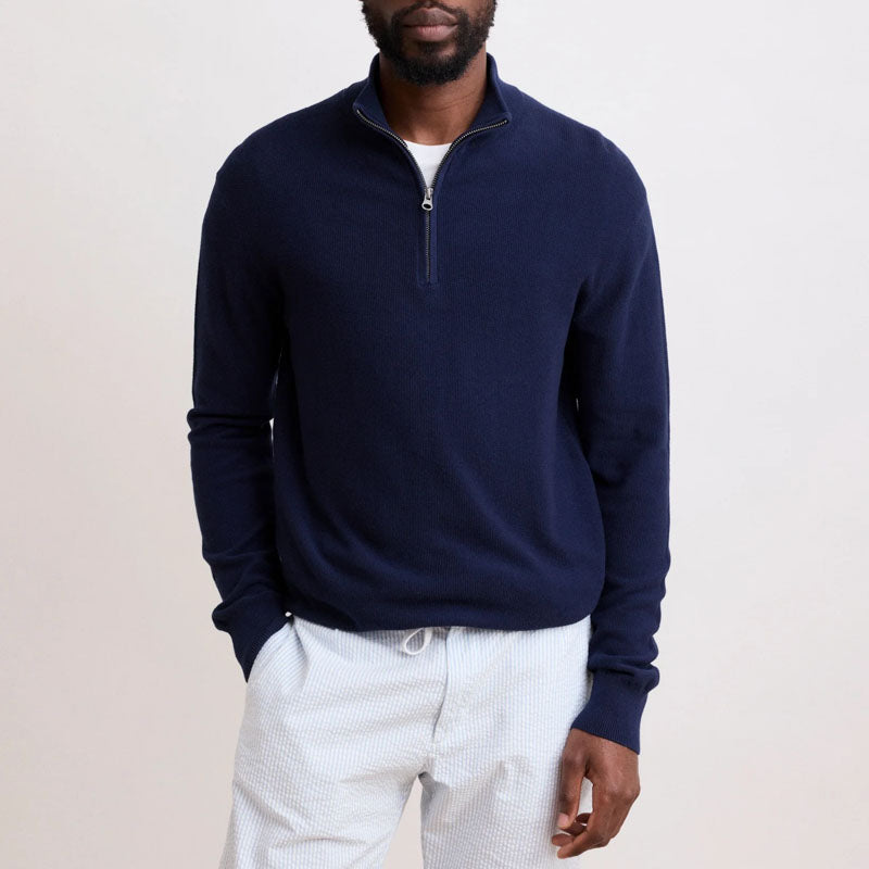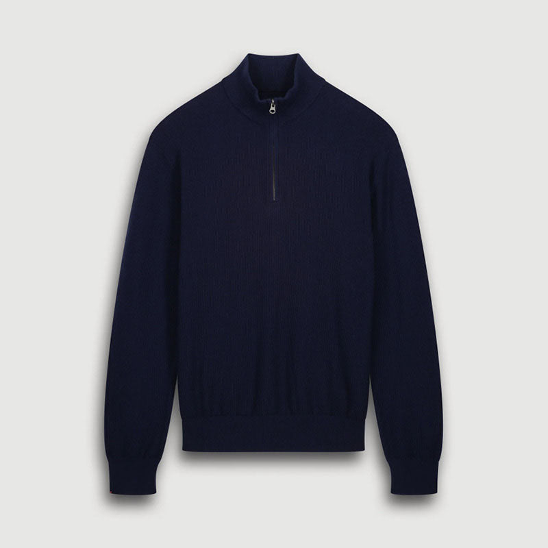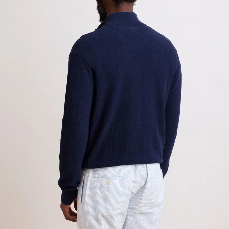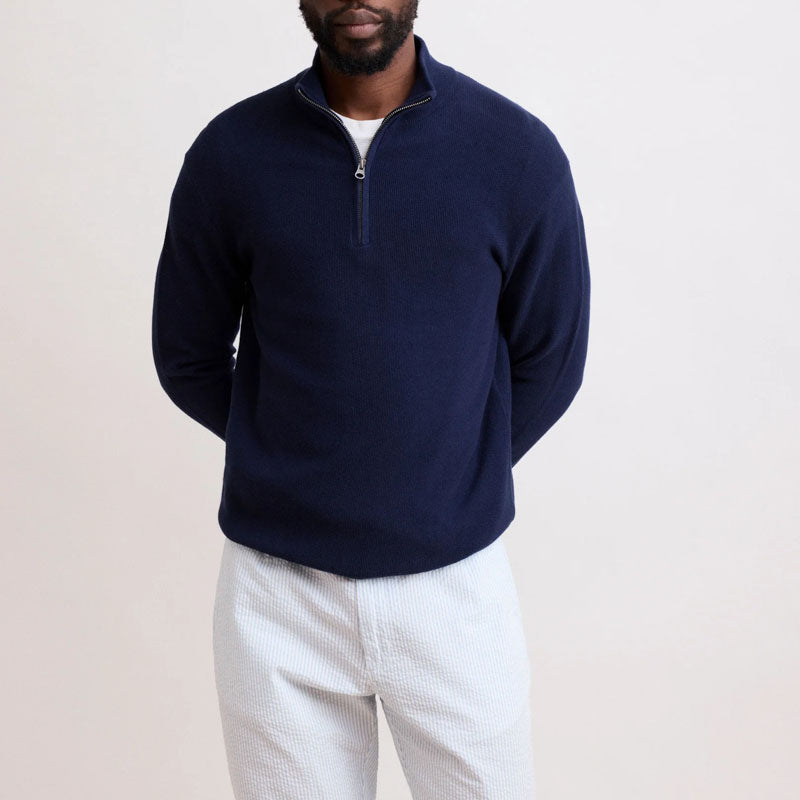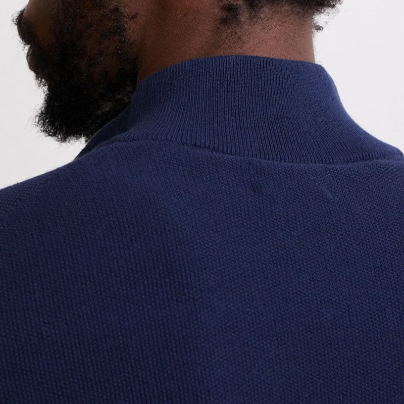 This trucker sweater with stand-up zip collar is the perfect seasonal starter. In sober, chic colours, it stands out for its quilted knit. A timeless, smart sweater for every occasion.