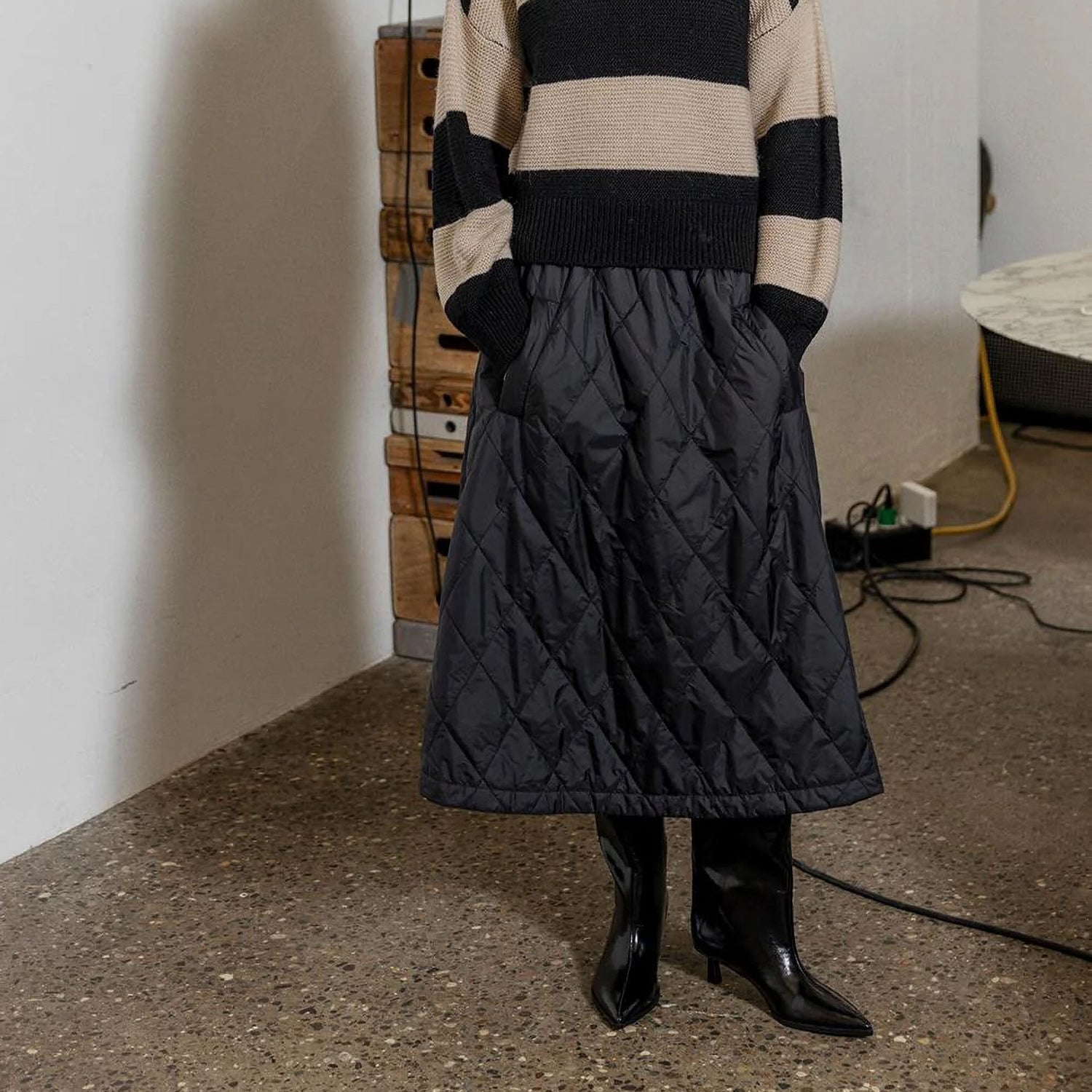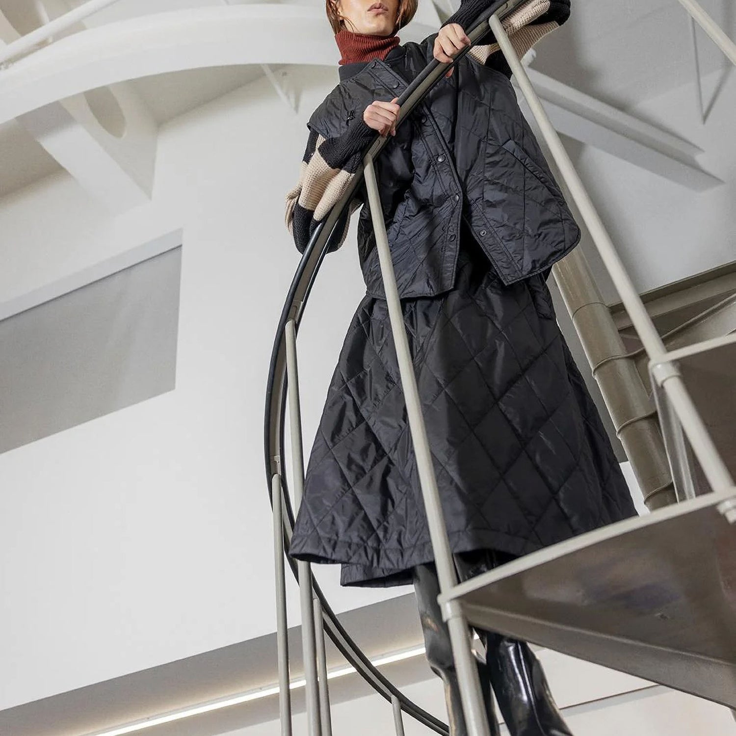 NICOLINE is a quilted midi skirt crafted in lightweight high-performance nylon