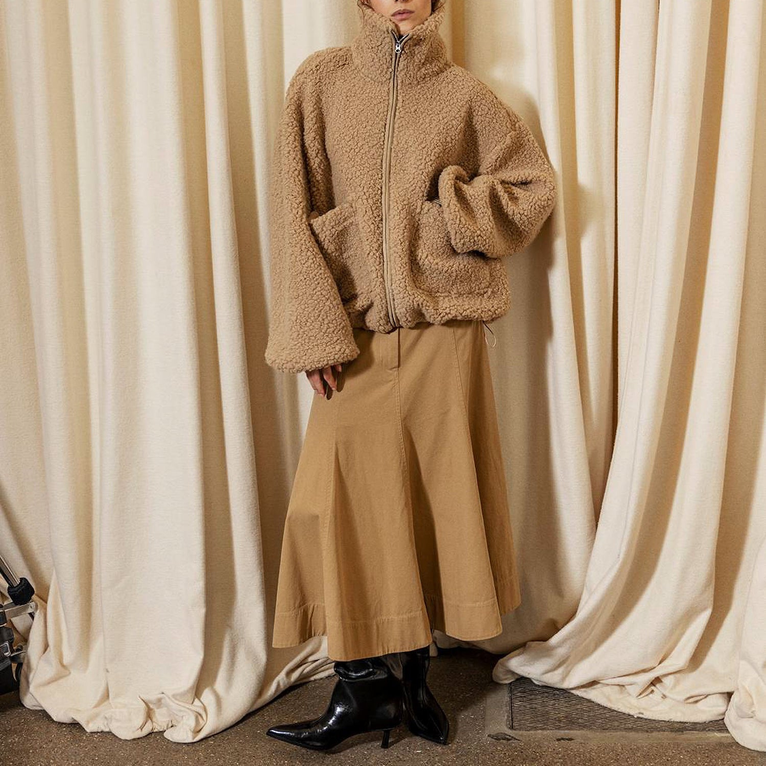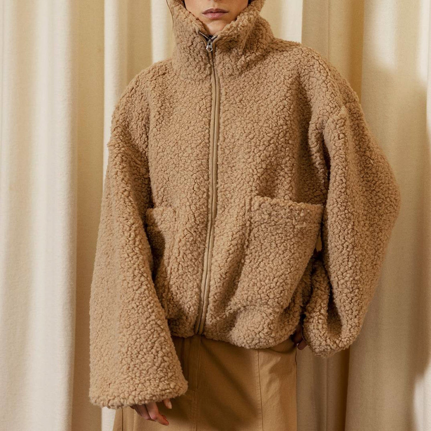 TEDDY is a soft zip-up jacket with a voluminous teddy texture and casual shape