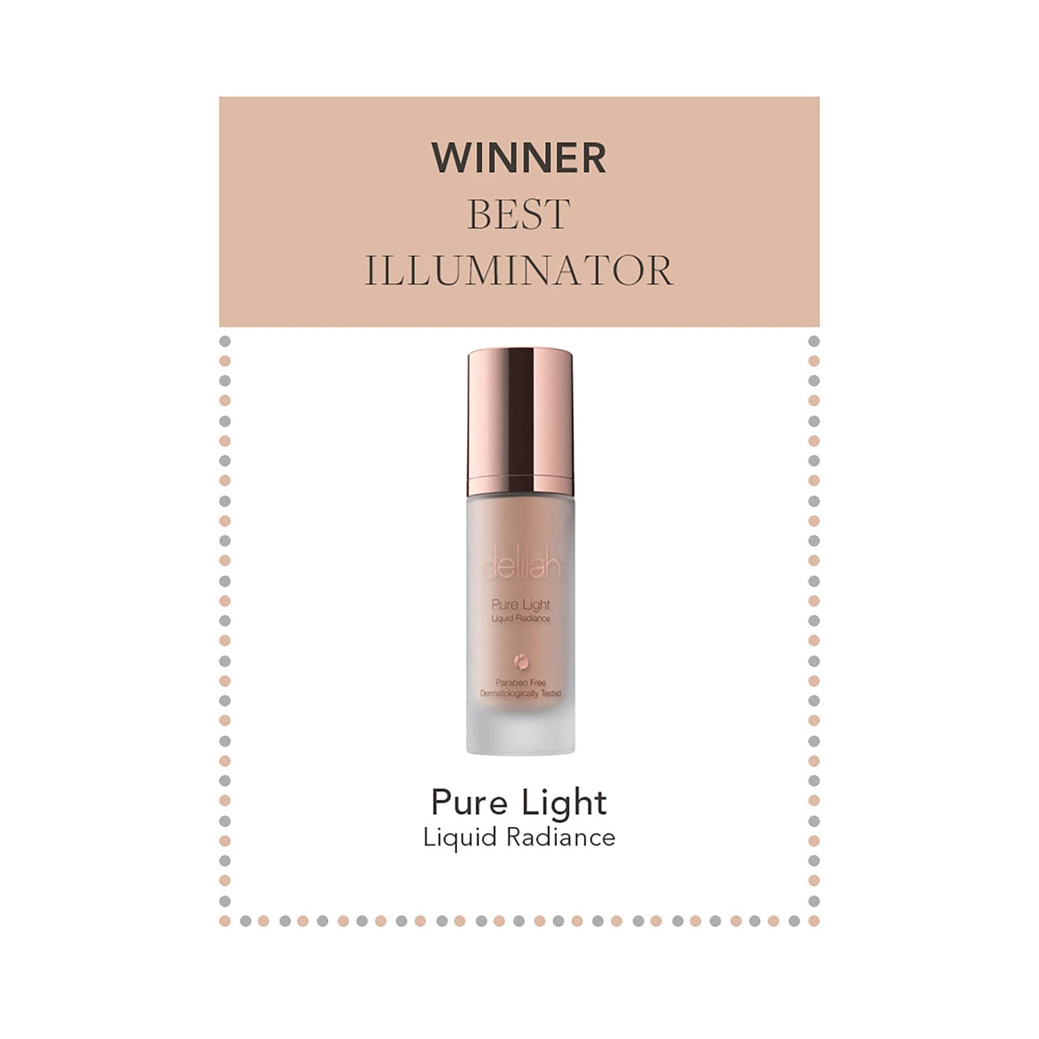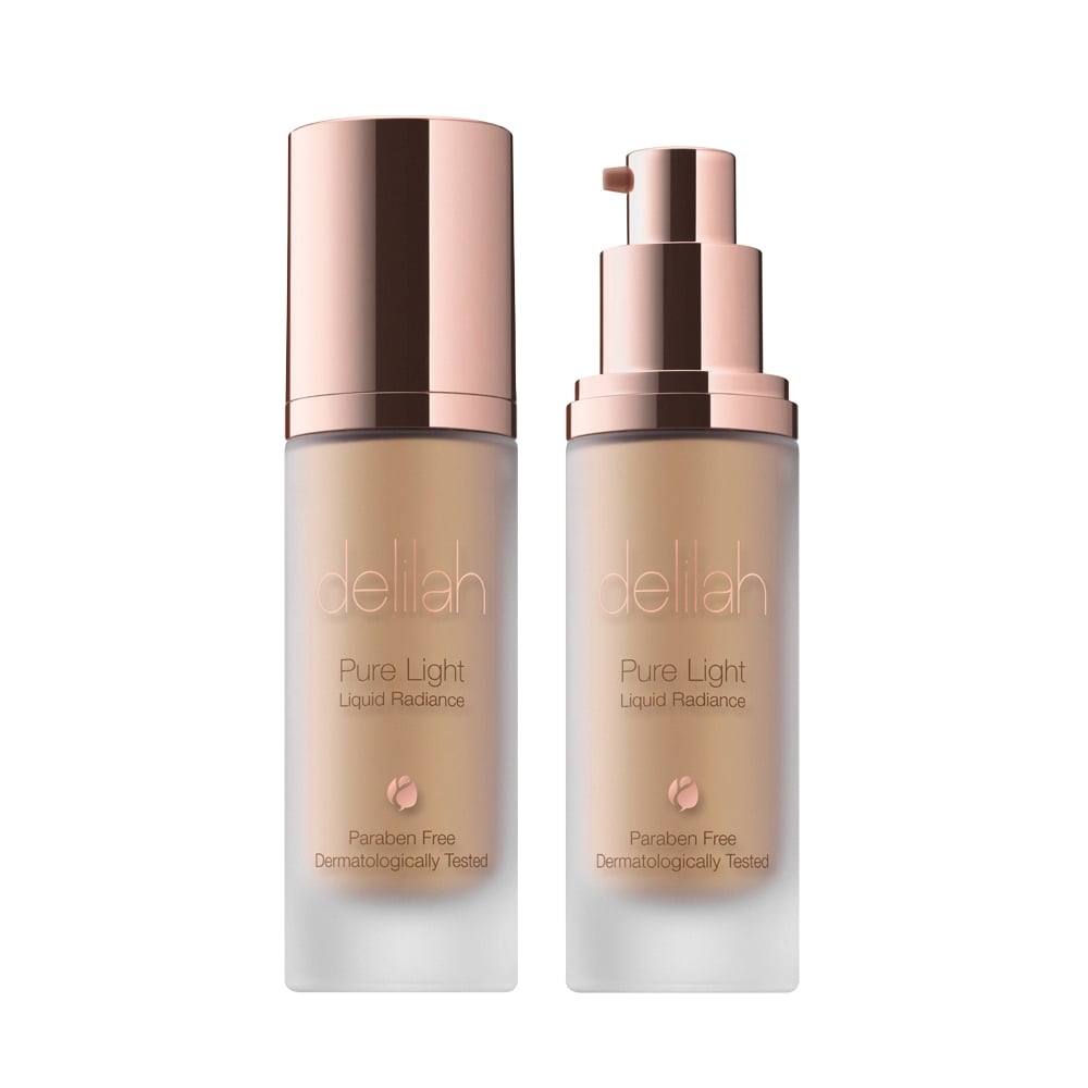 The Pure Light Liquid radiance from Delilah is a beautiful liquid illuminator, with a sheer and weightless feel which instantly brightens and evens out skin tone, giving a lit - from within glow. Infused with Vitamin E to protect from daily damage of free radicals and packaged in a beautiful rose gold and glass bottle. This skin enhancing veil instantly blurs imperfections and diminishes dullness without a trace of tell - tale glitter.