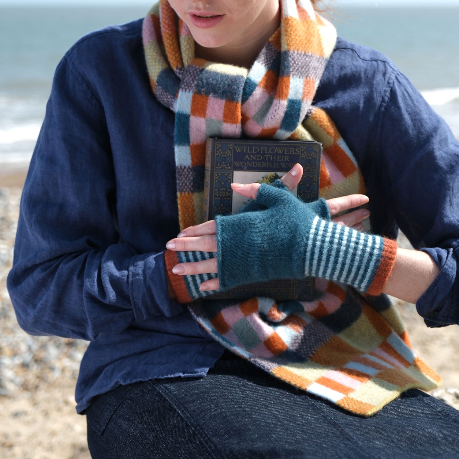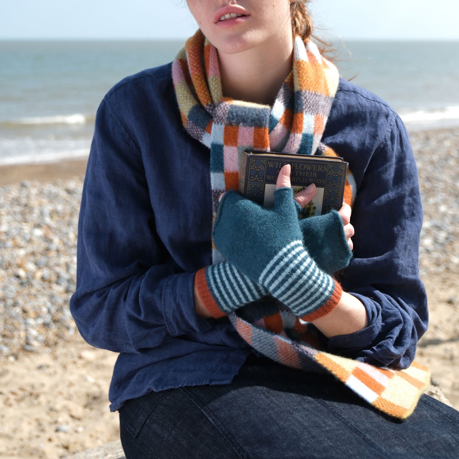 Knitted in Scotland from a luxurious blend of 25% angora and 75% lambswool, these mittens are warm yet lightweight, making them an ideal accessory for transitional weather.