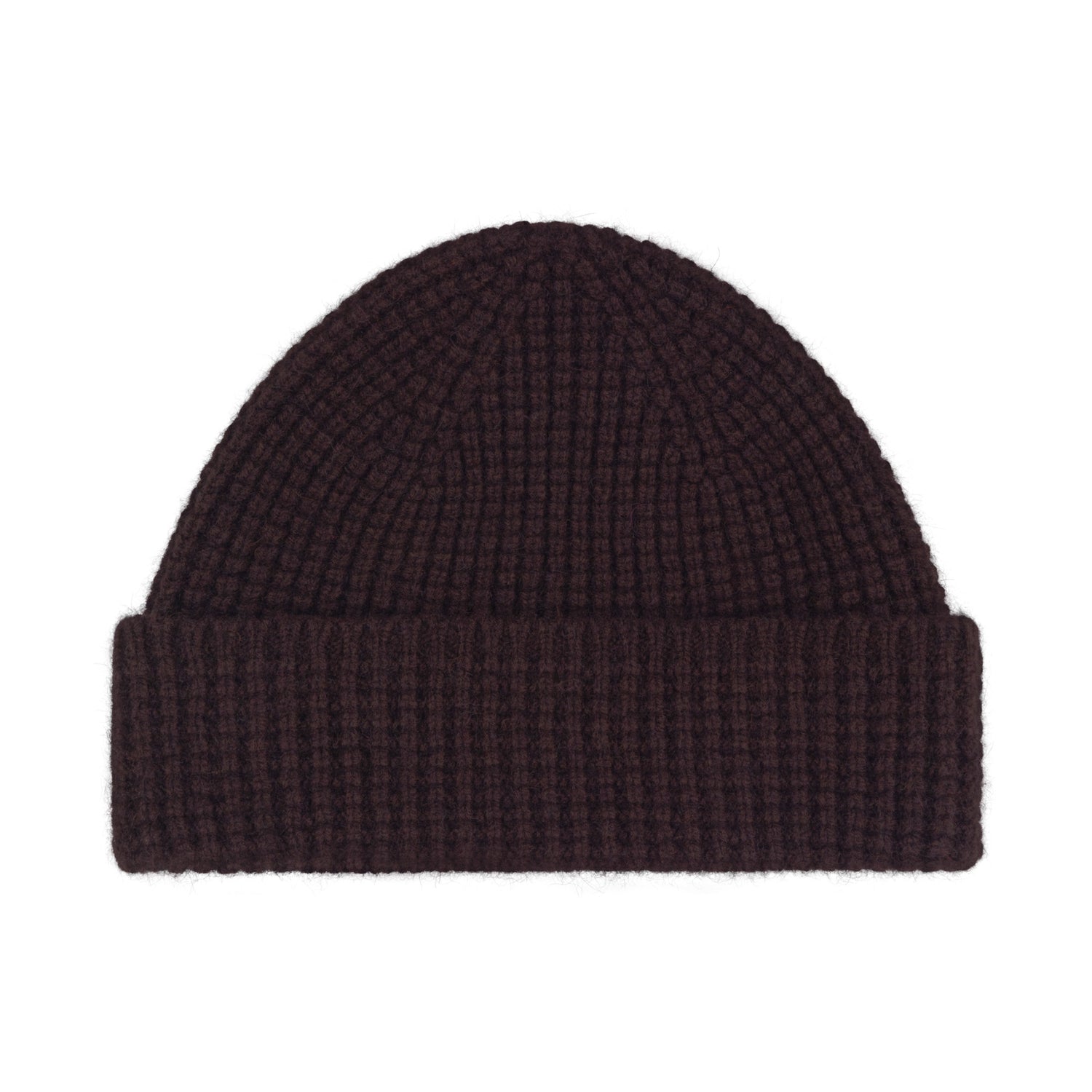 Knitted in Scotland from a luxuriously soft angora and lambswool blend, it features a tuck rib stitch and a generous turned-up hem for an easy, comfortable fit that holds in the warmth.