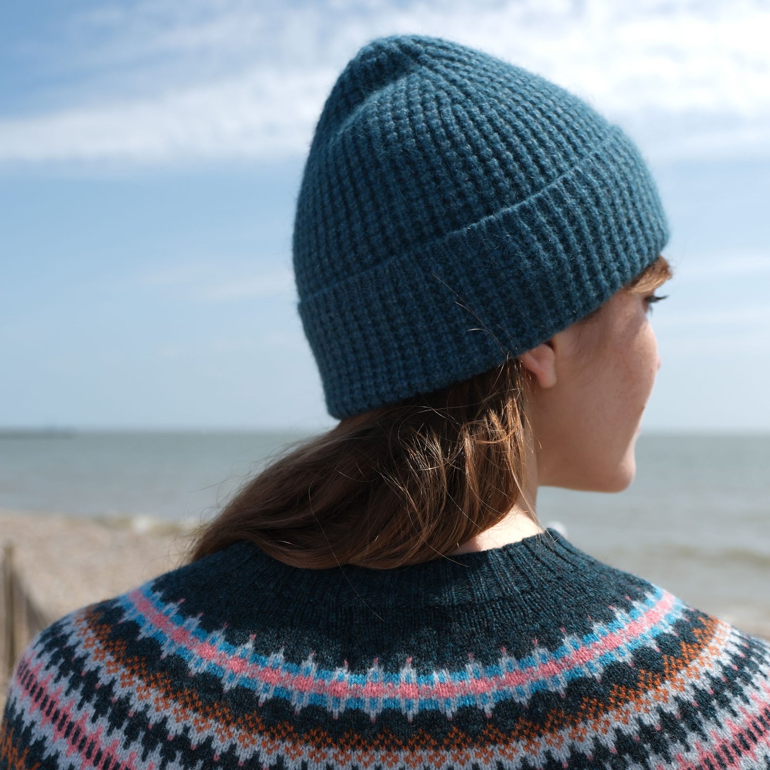 Knitted in Scotland from a luxuriously soft angora and lambswool blend, it features a tuck rib stitch and a generous turned-up hem for an easy, comfortable fit that holds in the warmth.