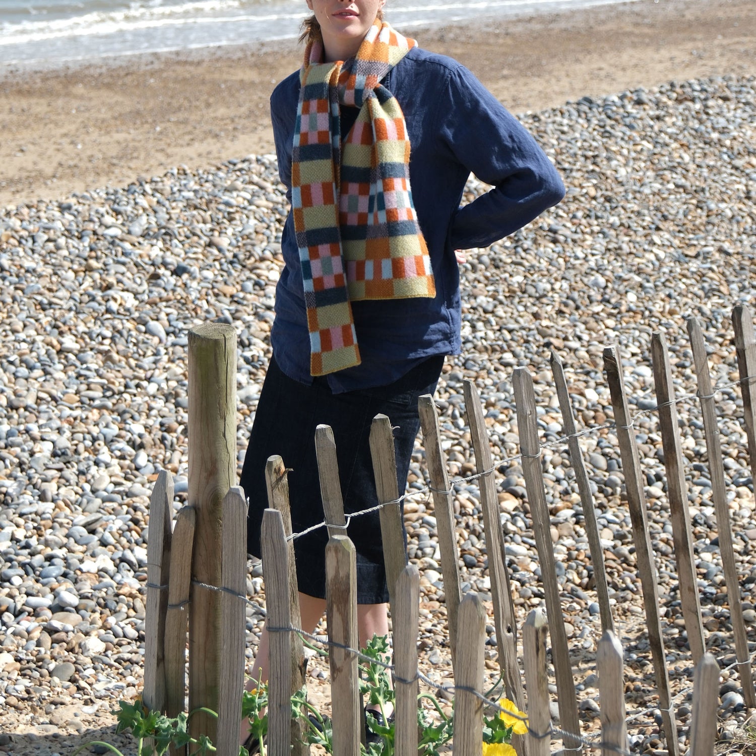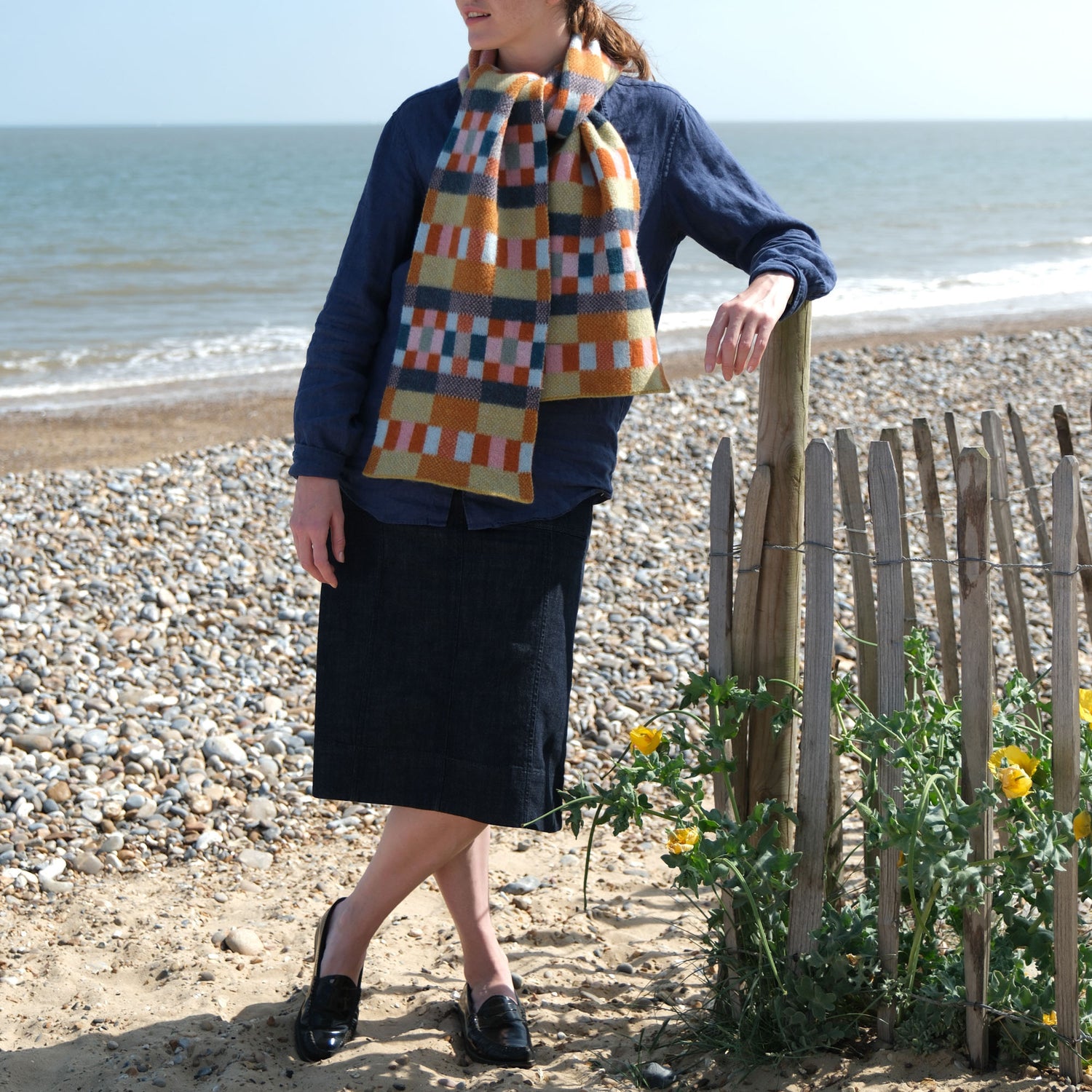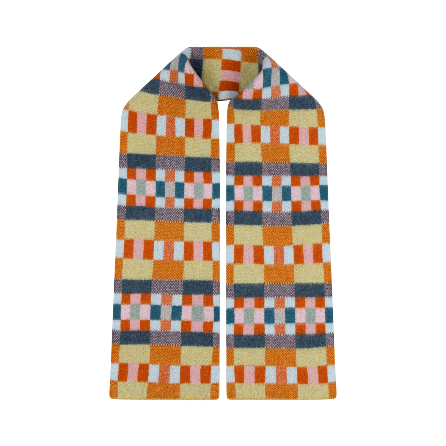 The brushed block scarf is crafted in Scotland from 100% lambswool, offering warmth, softness, and timeless style.