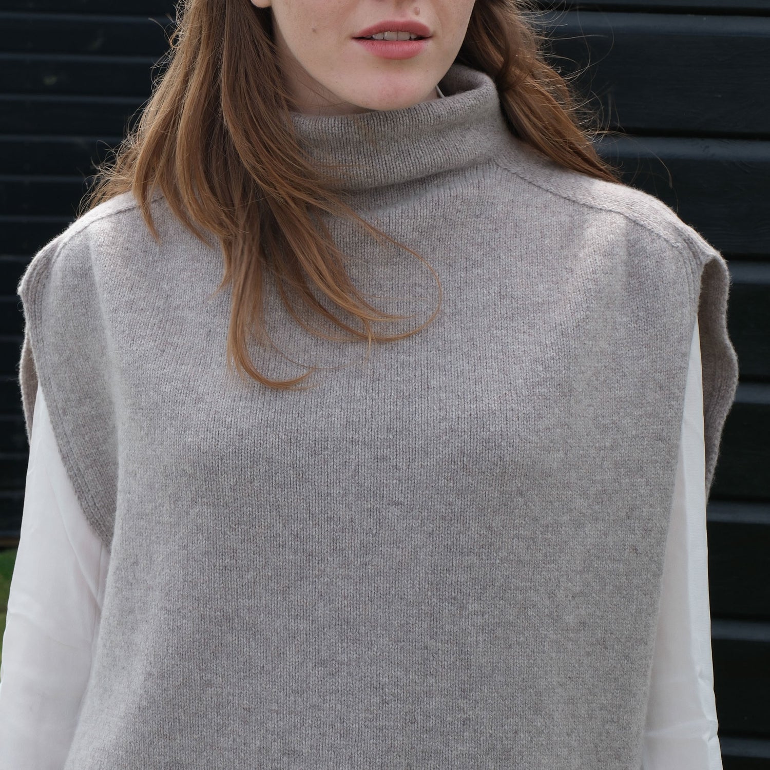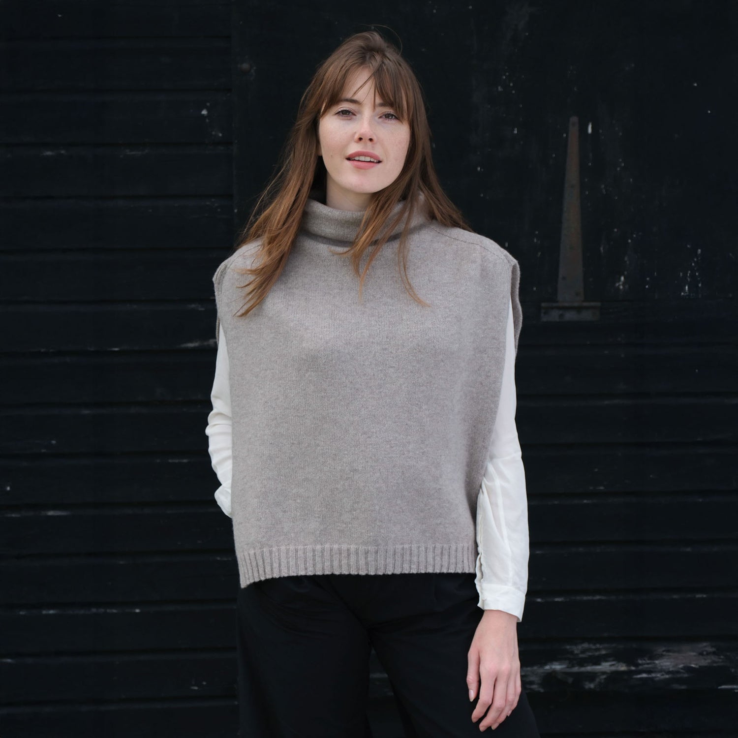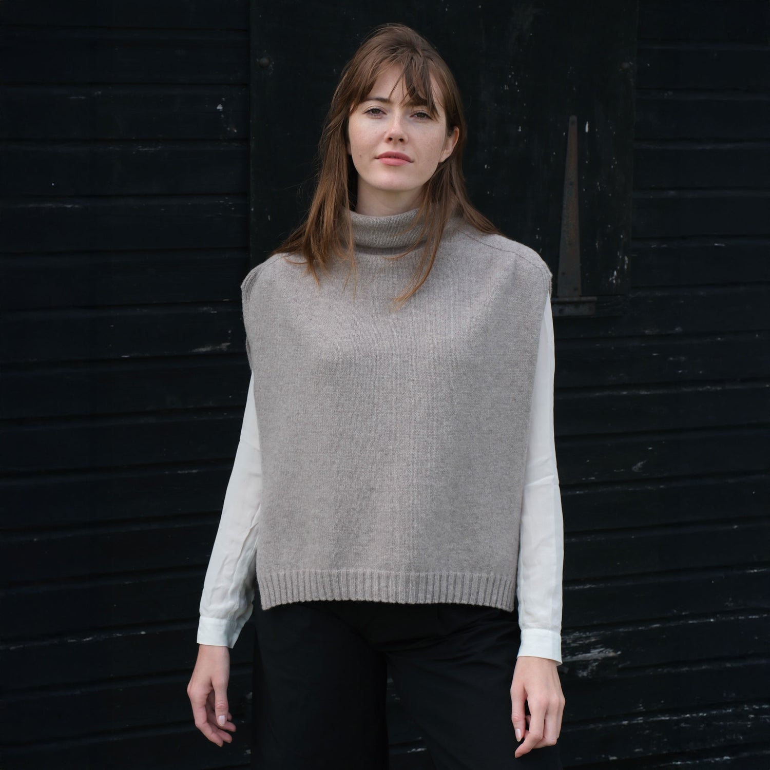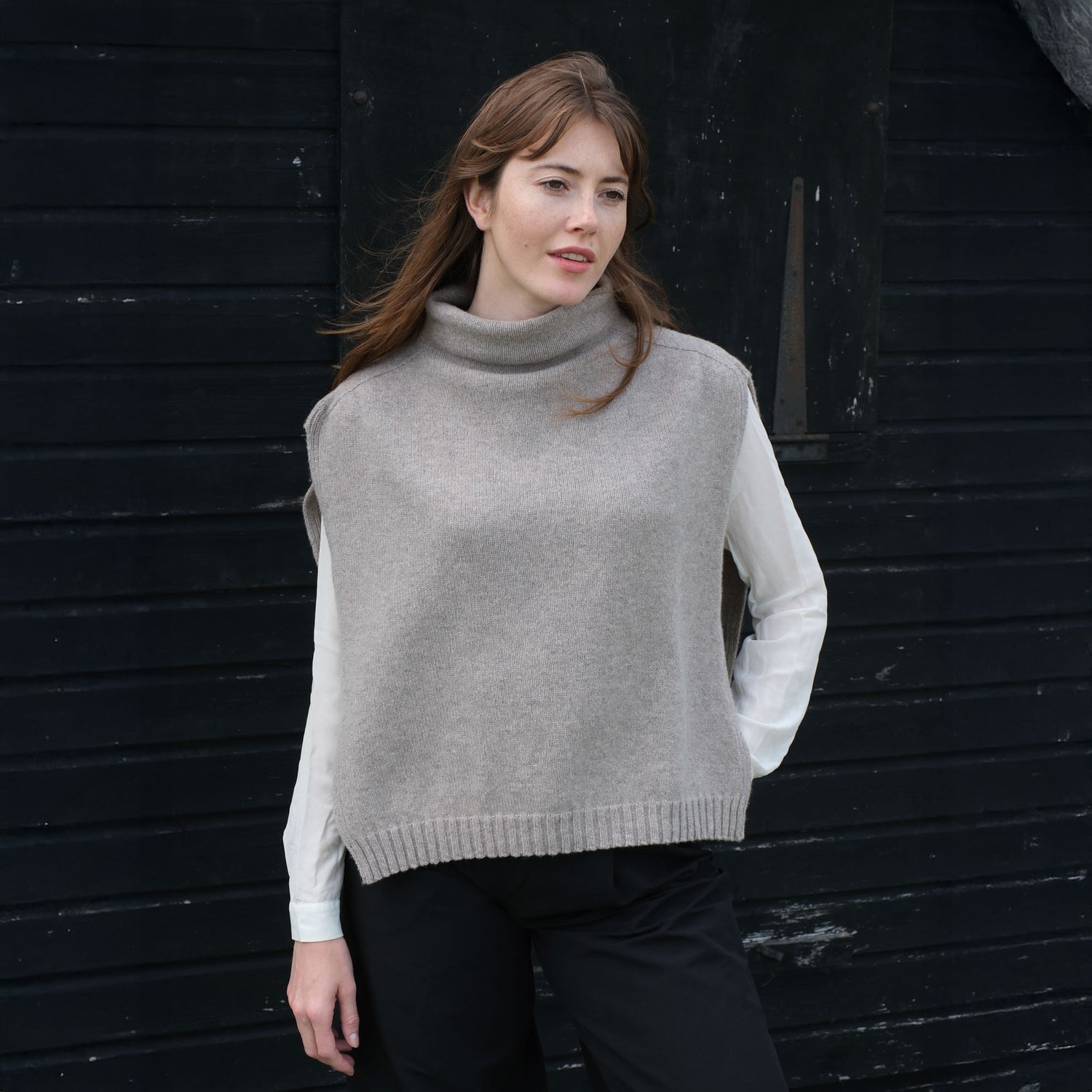 Crafted in Scotland from 100% lambswool, the Funnel Neck Poncho in Tawney blends luxurious comfort with quiet sophistication.