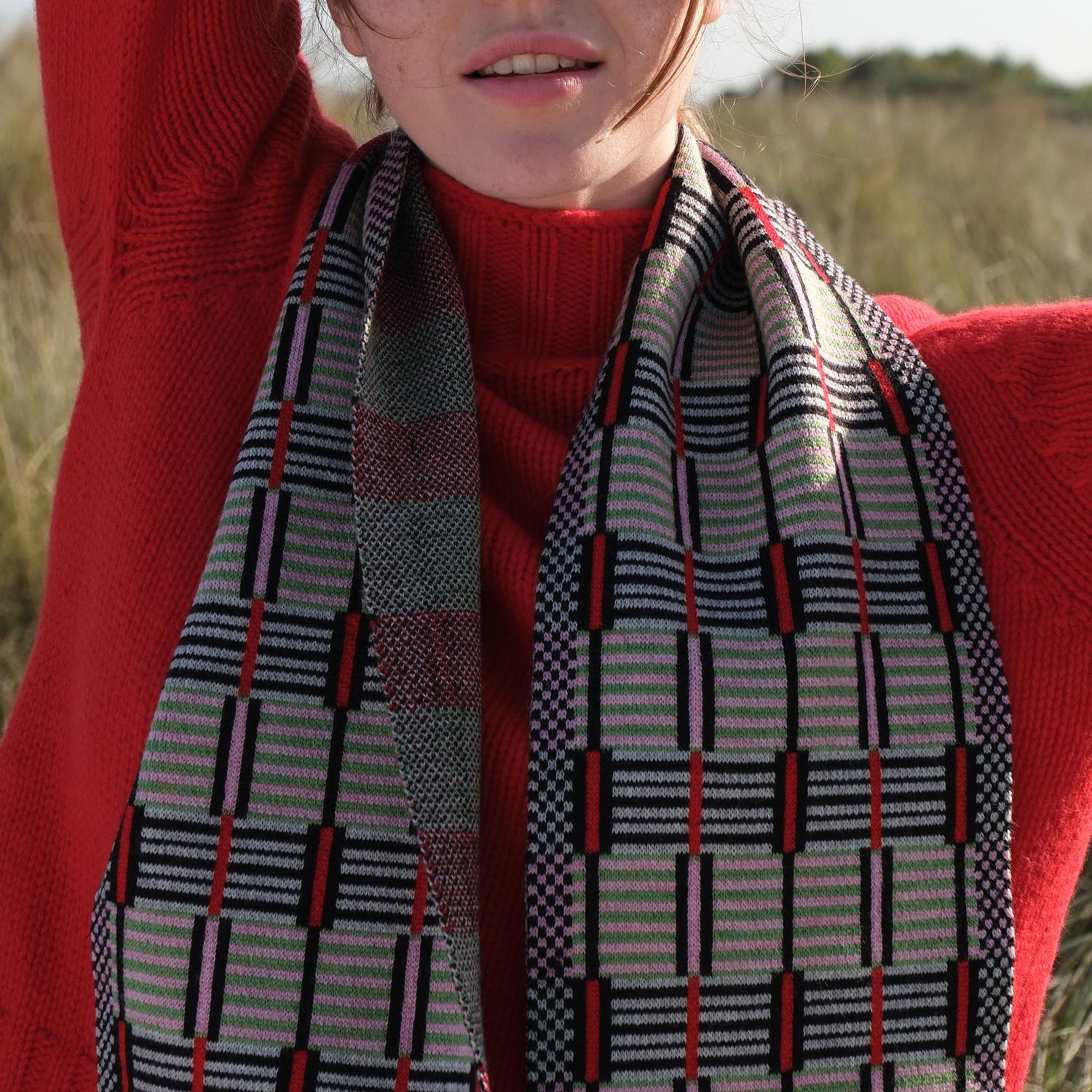 QUINTON & CHADWICK Ladders Scarf in Red Green