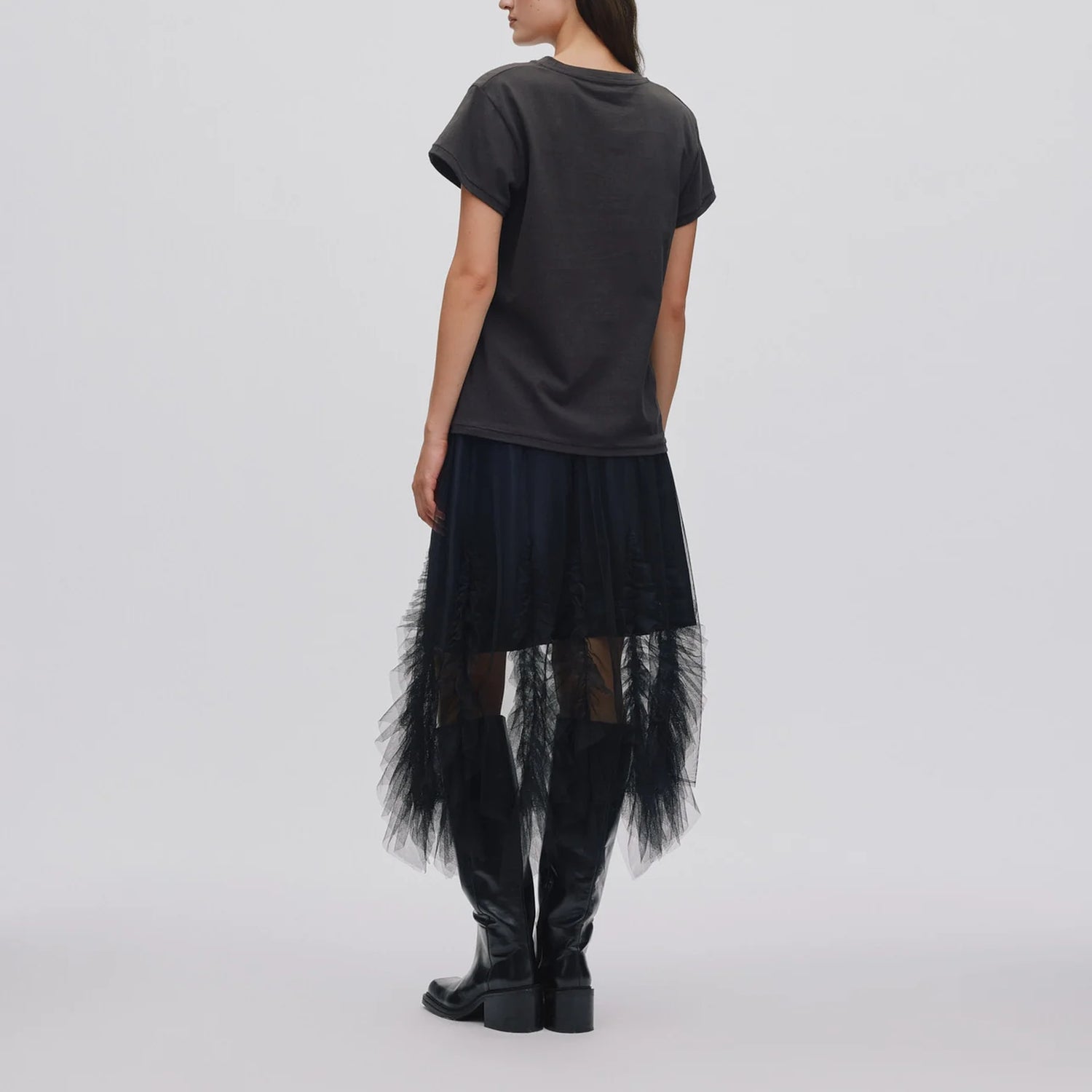 Add a playful yet stylish touch to your day-to-night wardrobe with this frilly tulle skirt. Crafted from lightweight, sheer fabric, it’s designed with layers of volume, delicate frills, and refined details.
