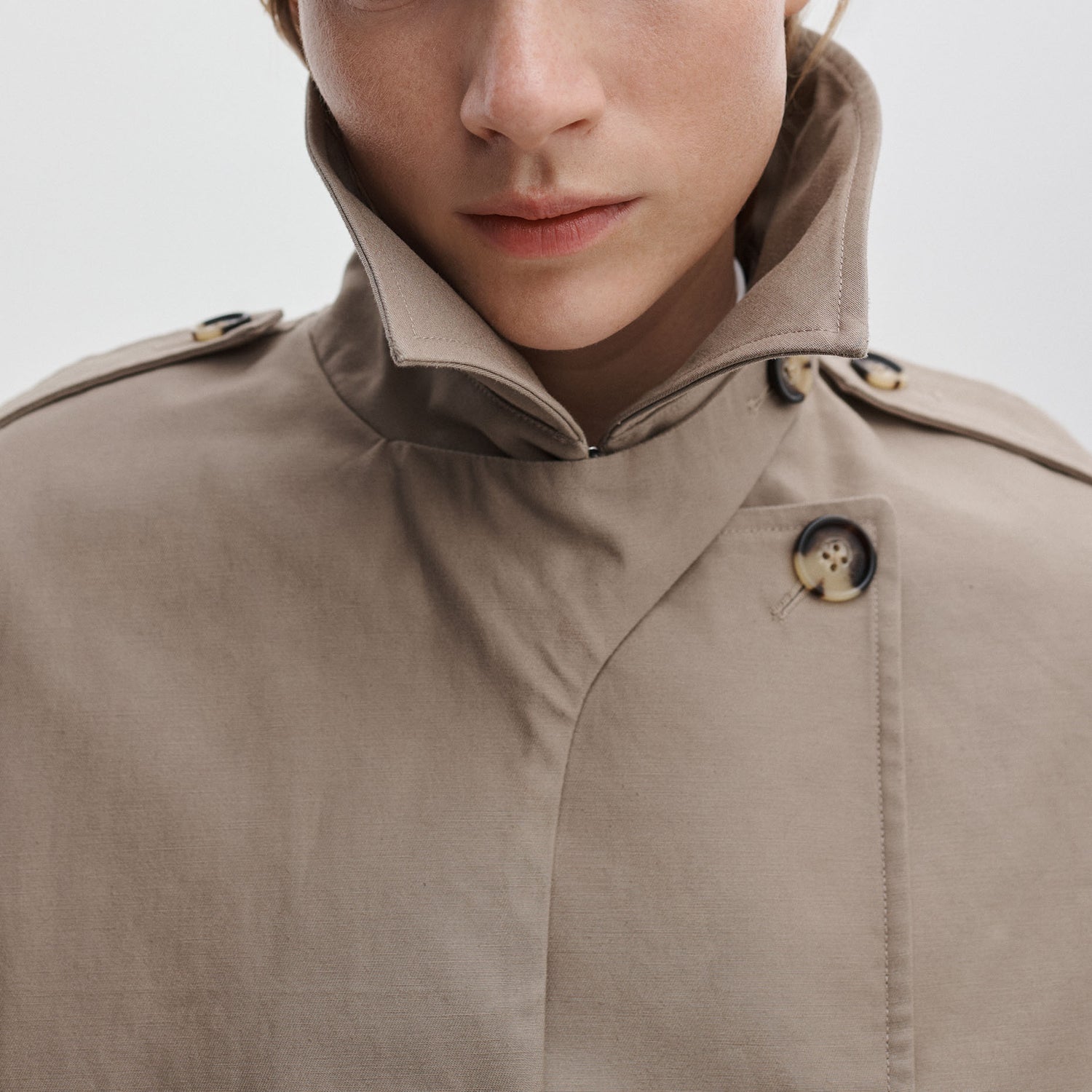 A cut above the rest. This trench brings timeless style with a modern twist... cropped for an effortless edge. Complete with epaulettes, storm flap, and all the classic details you'd expect, it's crafted entirely from cotton for breathable comfort.  A cool girl jacket!
