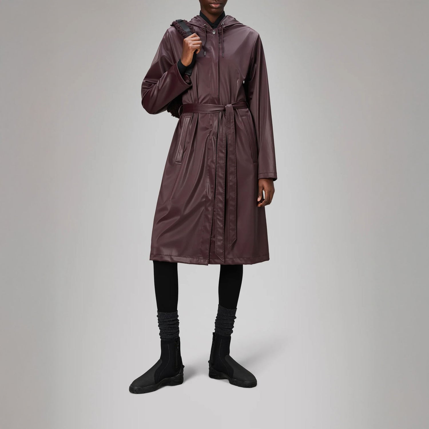 A-Line Jacket is a women's raincoat characterized by its A-shaped silhouette in an elegant design.