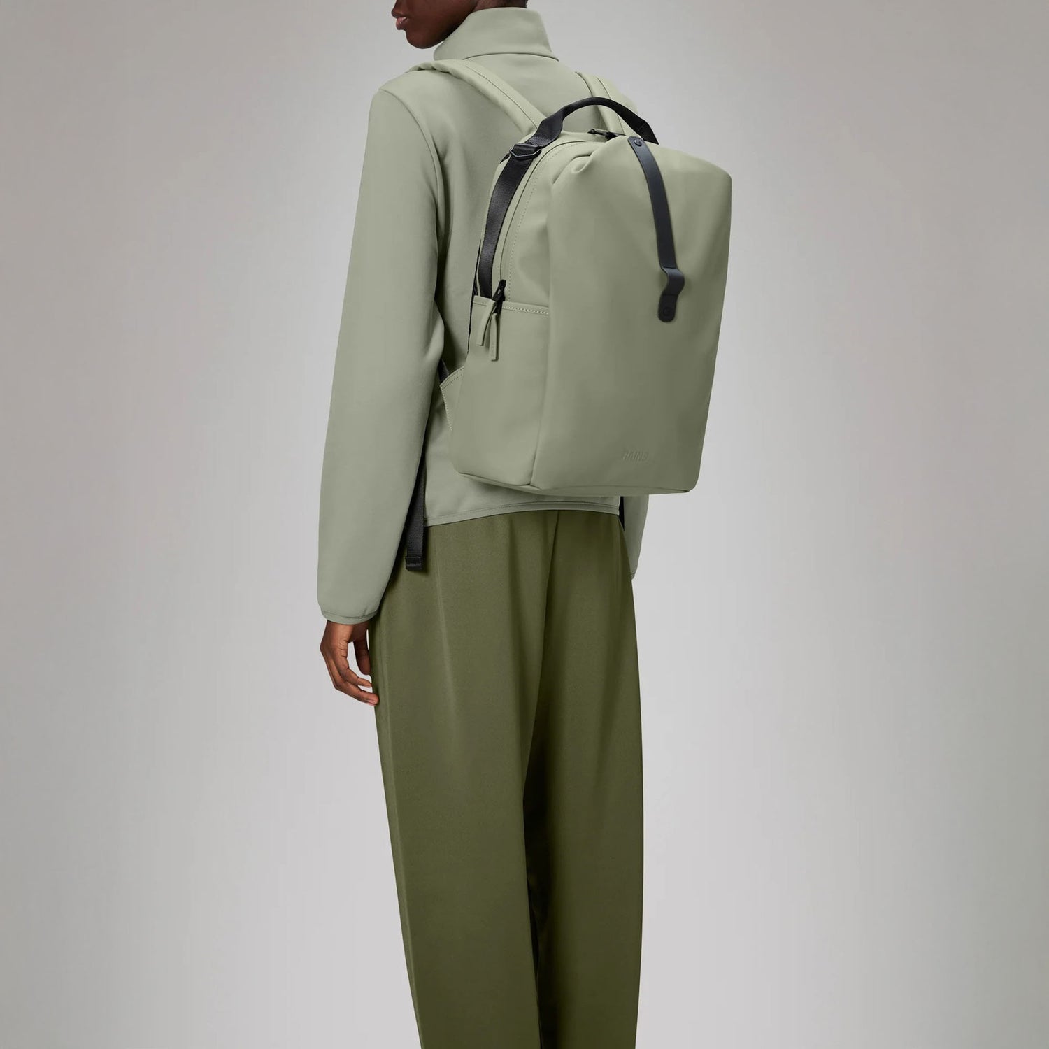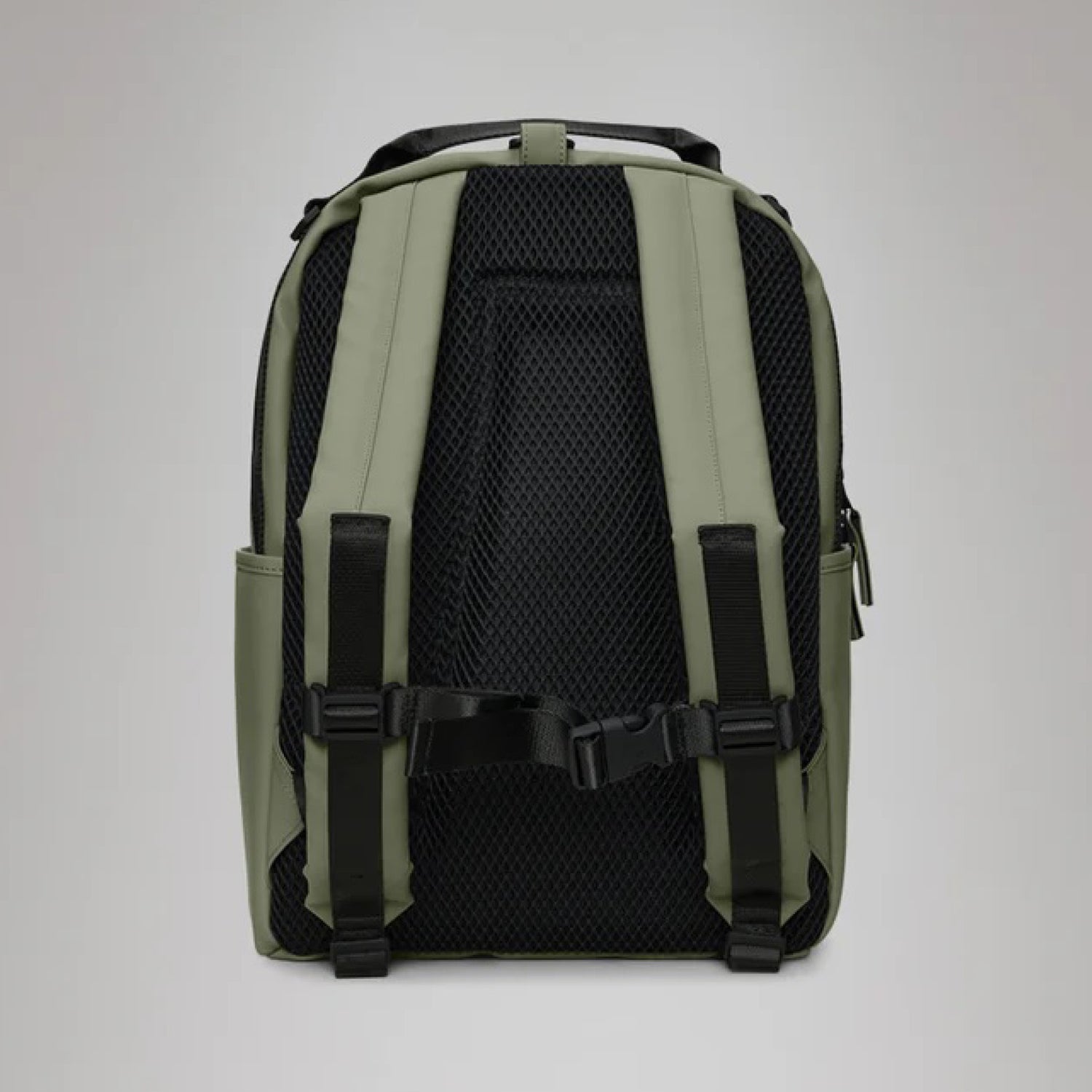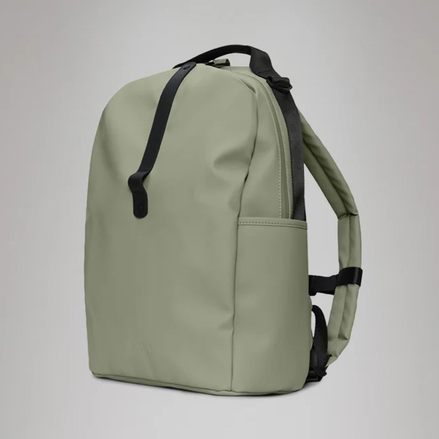 The backpack is designed with great functionality, wrapped in a commuter-friendly silhouette. The main compartment features several smaller pockets, key storage loop and a padded slip pocket for a 16” laptop. The exterior has side pockets for water bottle, umbrella etc. and a D-ring for keys. The padded back panel, adjustable padded back straps and chest strap assures great comfort when on the move. Clip Front Backpack is cut from Rains' signature PU fabric, engineered for carrying strength, durability and a smooth feel.