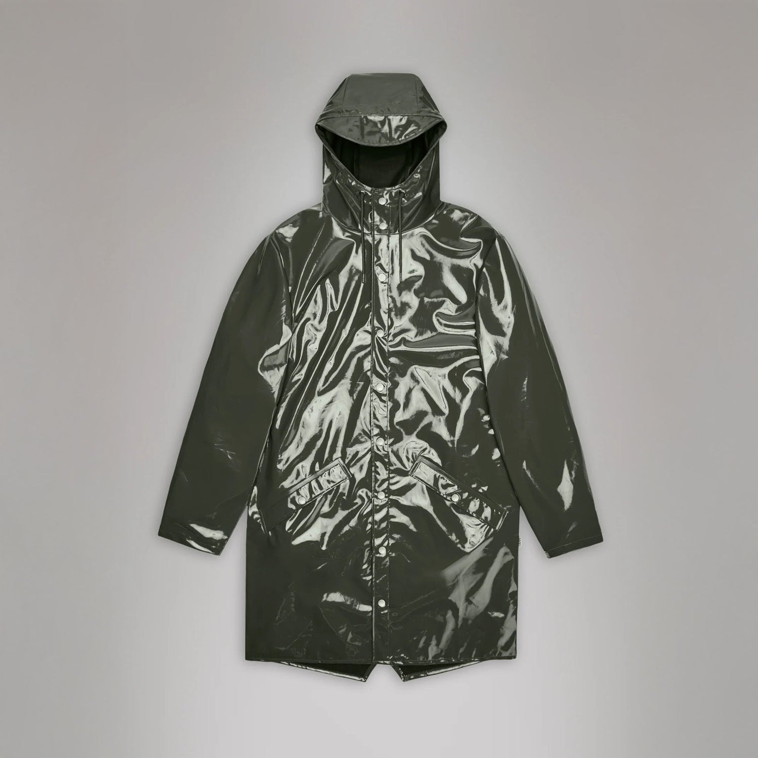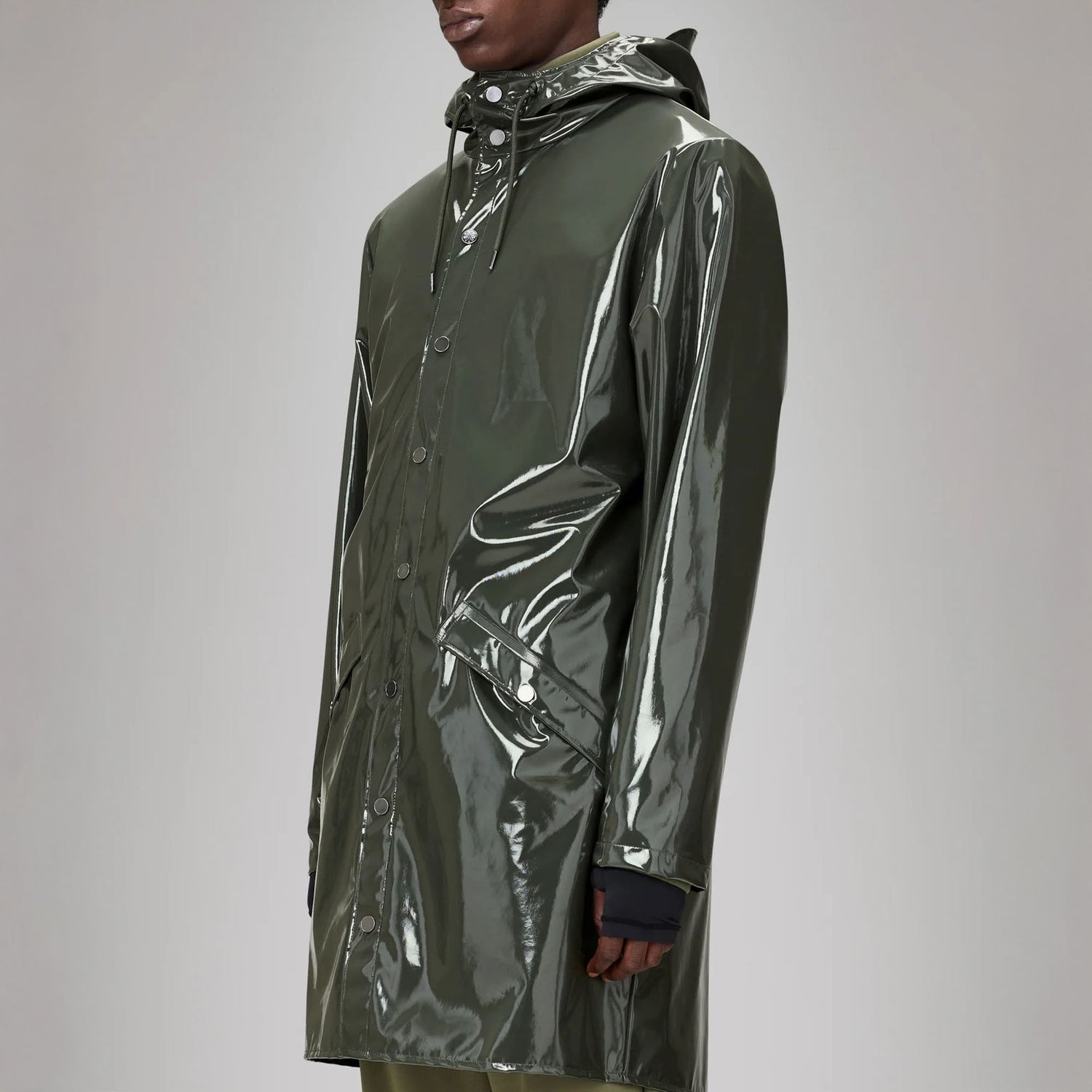 Long Jacket is cut from Rains' signature PU fabric and features welded seams. The finish is lightweight with a smooth feel.