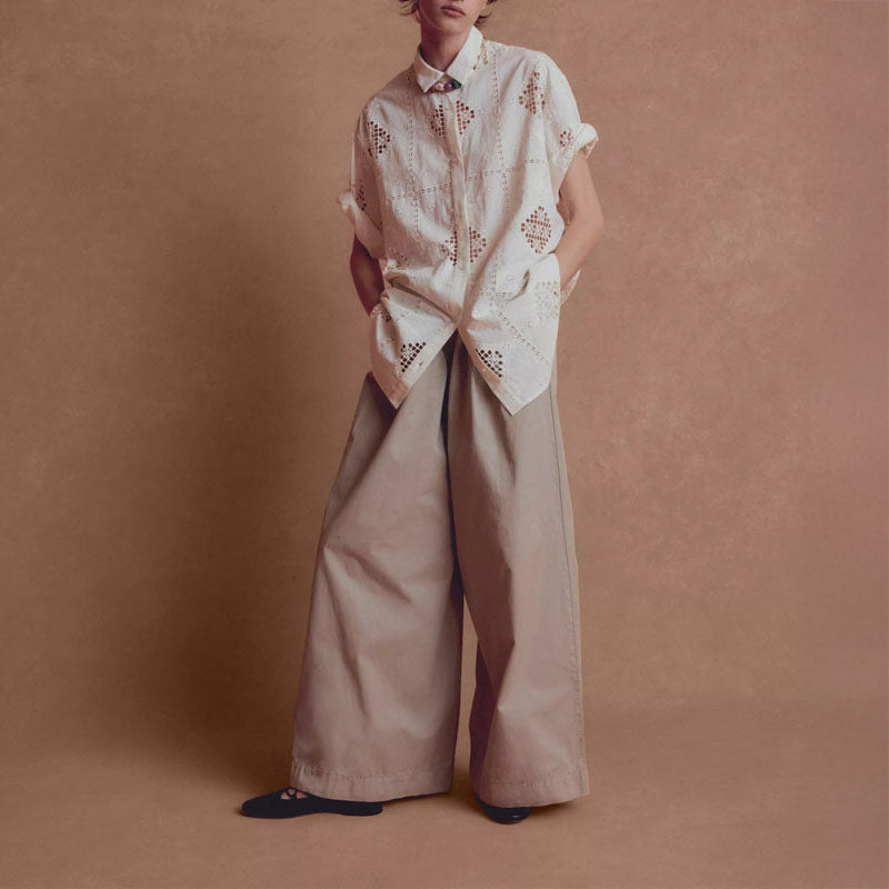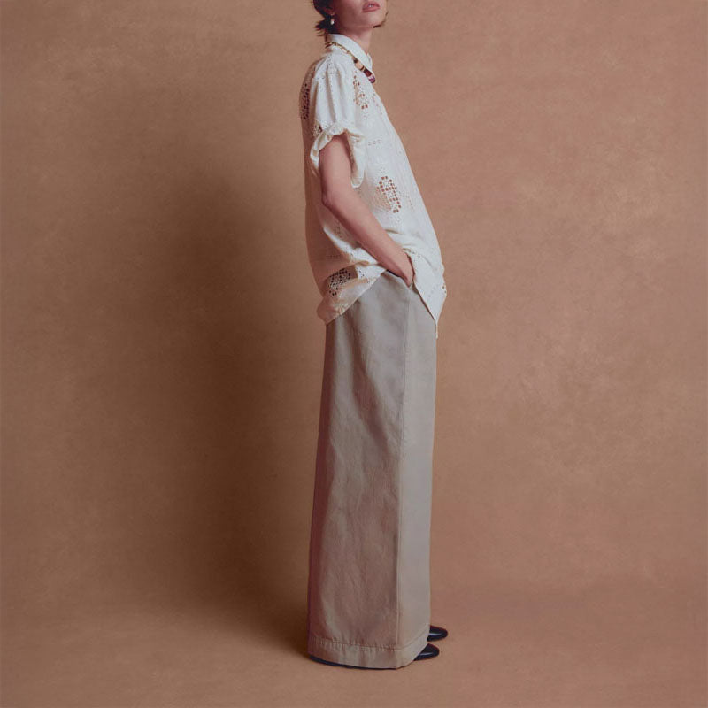 These elasticated, loose-fitting trousers are made from lightweight organic cotton twill that’s garment-dyed and lightly brushed for a soft, lived-in feel. The fabric is woven in Spain, combining comfort with understated style.