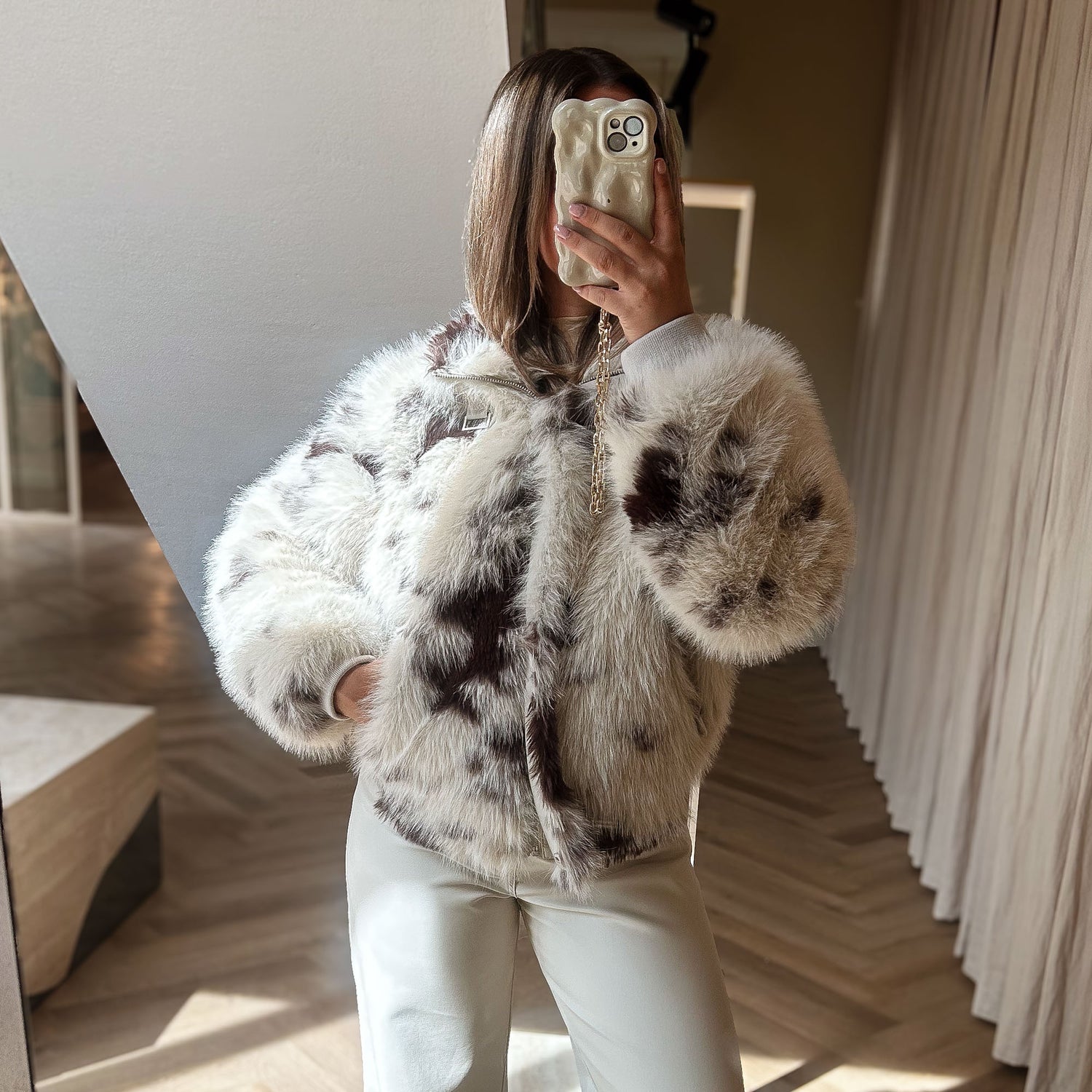 - Short length faux fur jacket