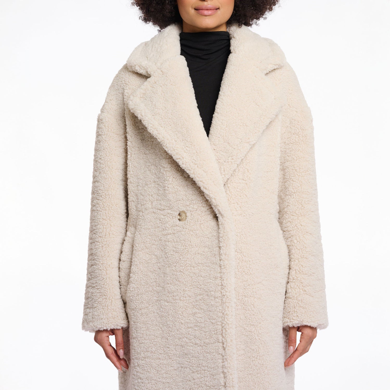 RINO & PELLE Elicia Teddy Double Breasted Coat in Birch