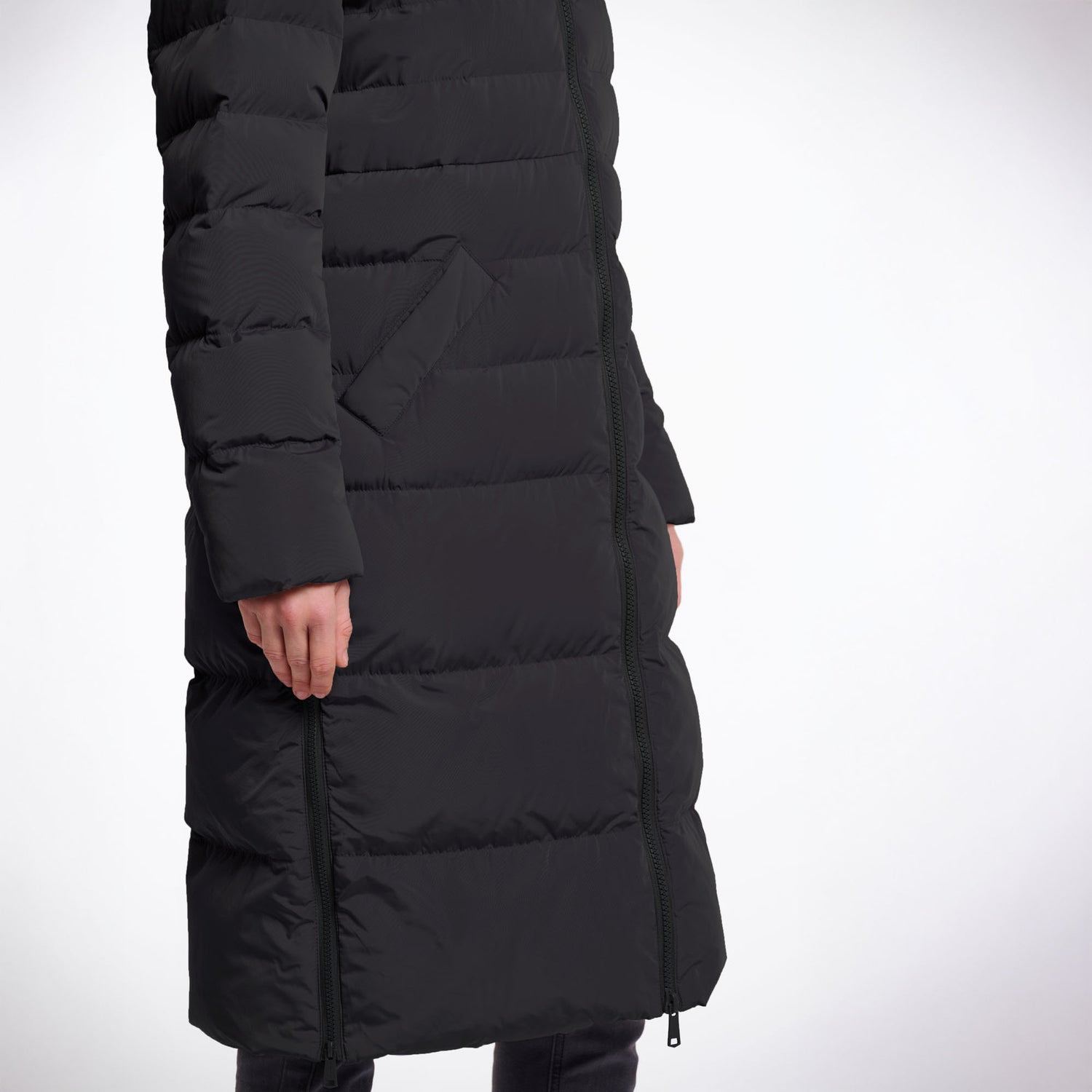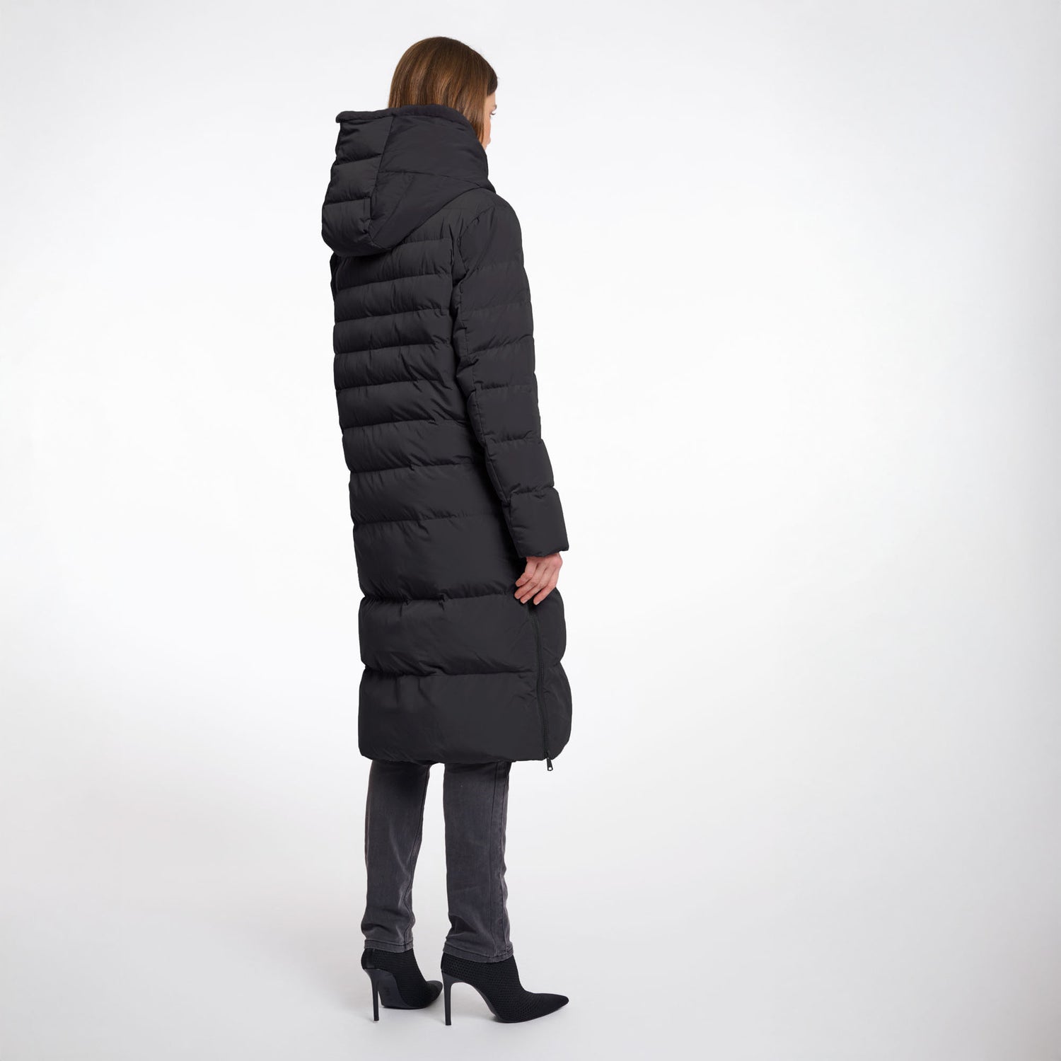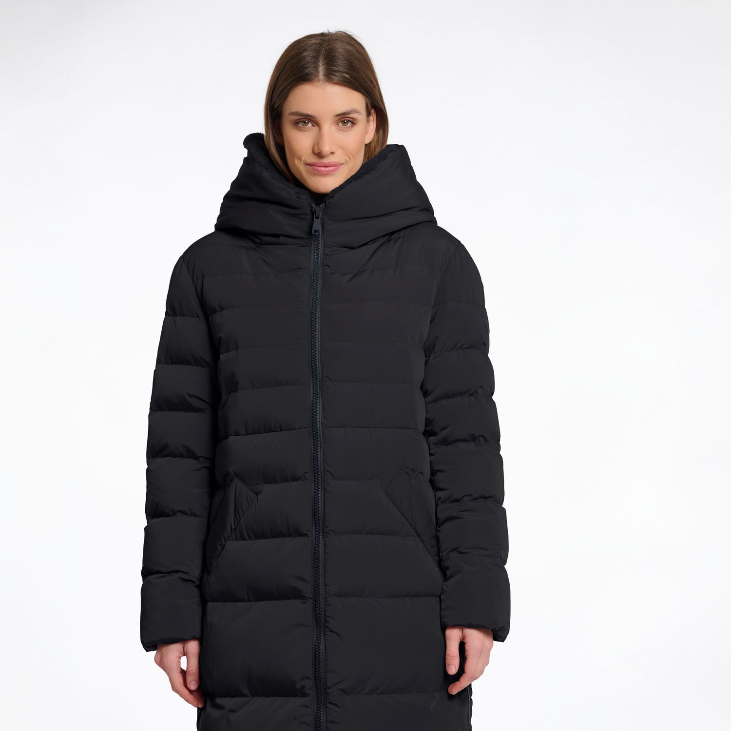 RINO & PELLE Keilafur Long Padded Hooded Coat with Faux Fur in Black
