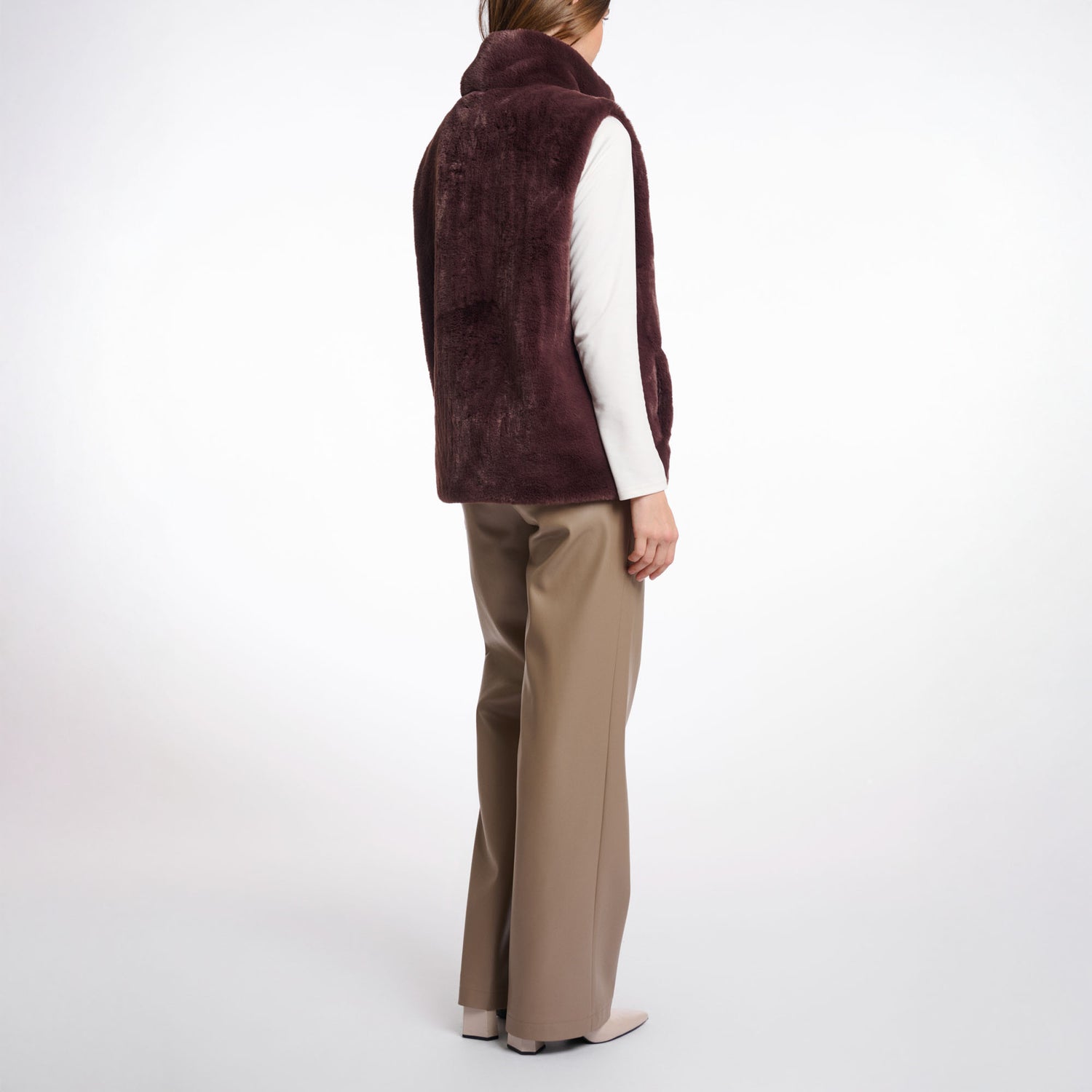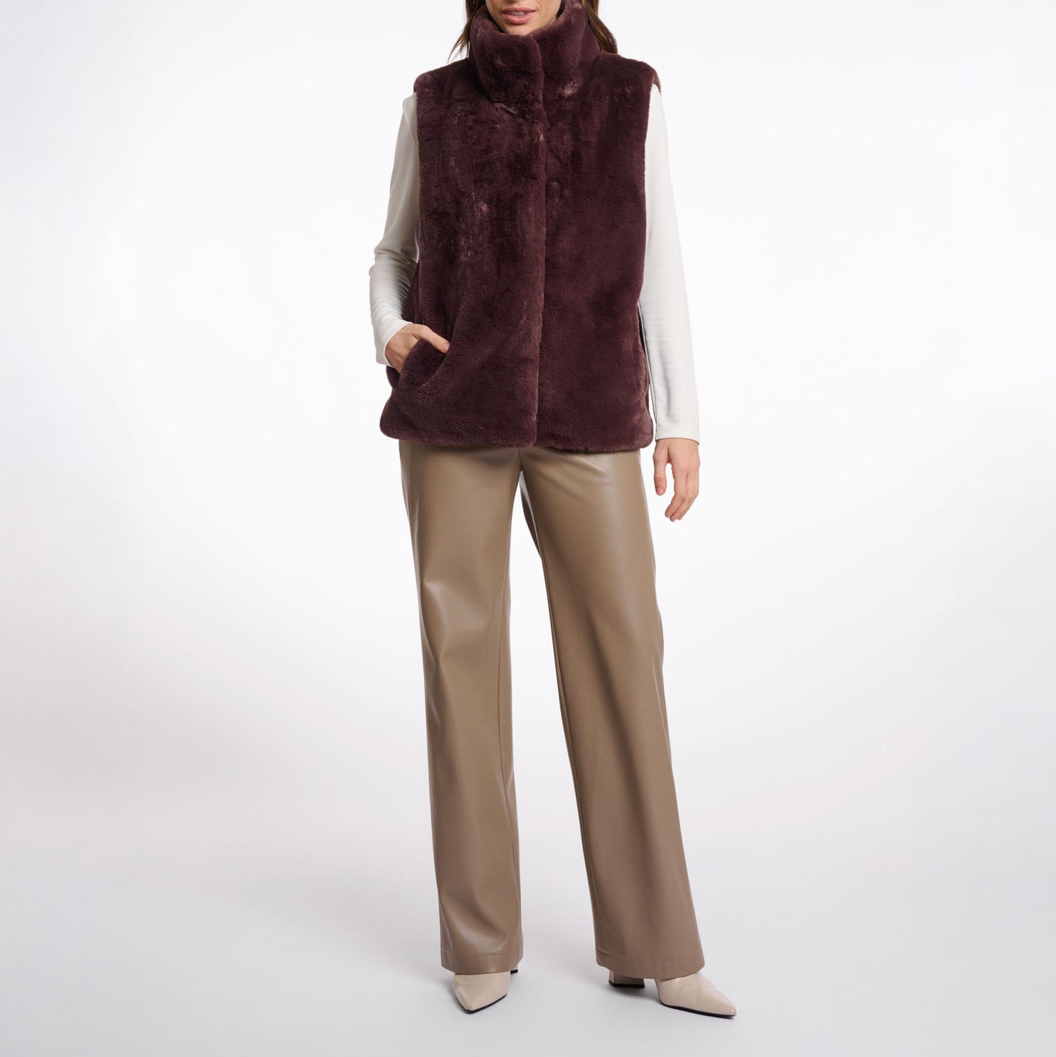 RINO & PELLE Lison Short Faux Fur Waistcoat in Chocolate Bean
